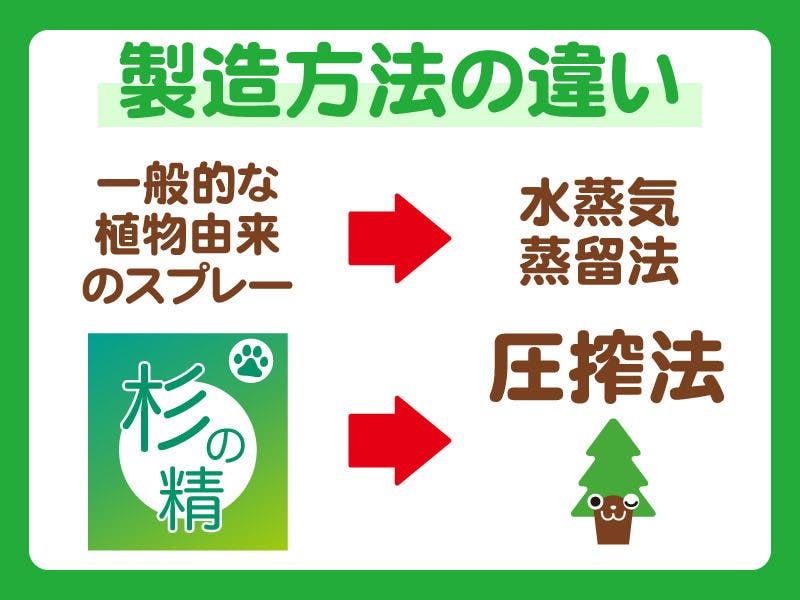 ■「杉の精」は、従来の樹木エキス抽出法とは、製造方法が違います。