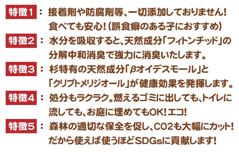……これらが全て、天然の「杉」の有効成分のチカラだけで発揮されます。