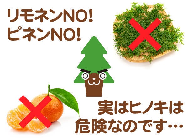 生ヒノキの成分には「リモネン」「ピネン」という猫が中毒を起こす成分が含まれているのです。