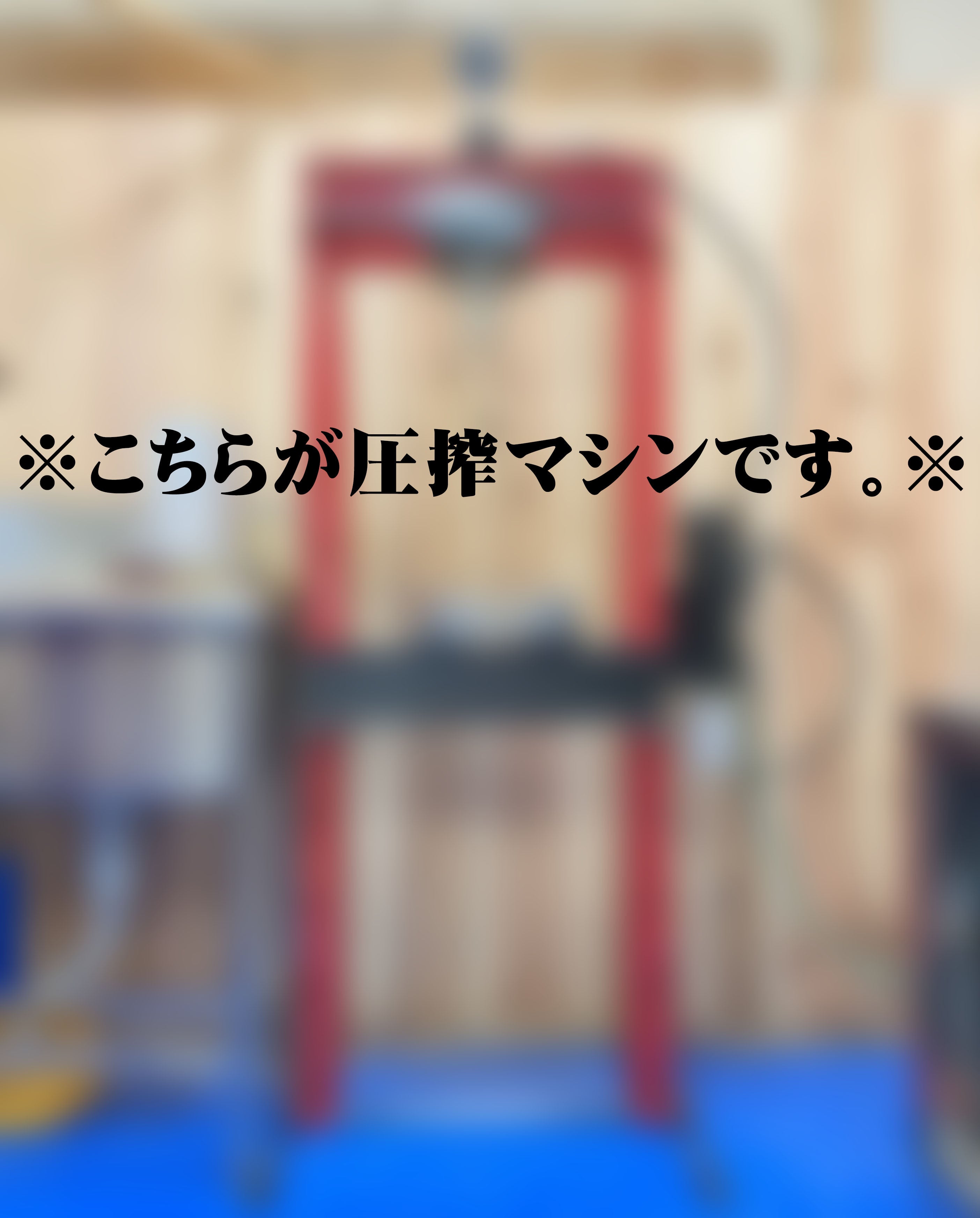 このおが粉に、圧搾マシンで数十トンの圧力をかけて樹液を抽出します。