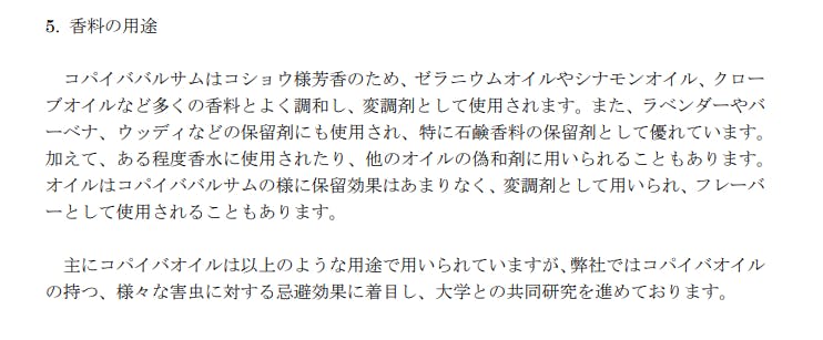 ただ、コパイバオイルを配合しただけでは、お客さまにコパイバオイルの特徴を