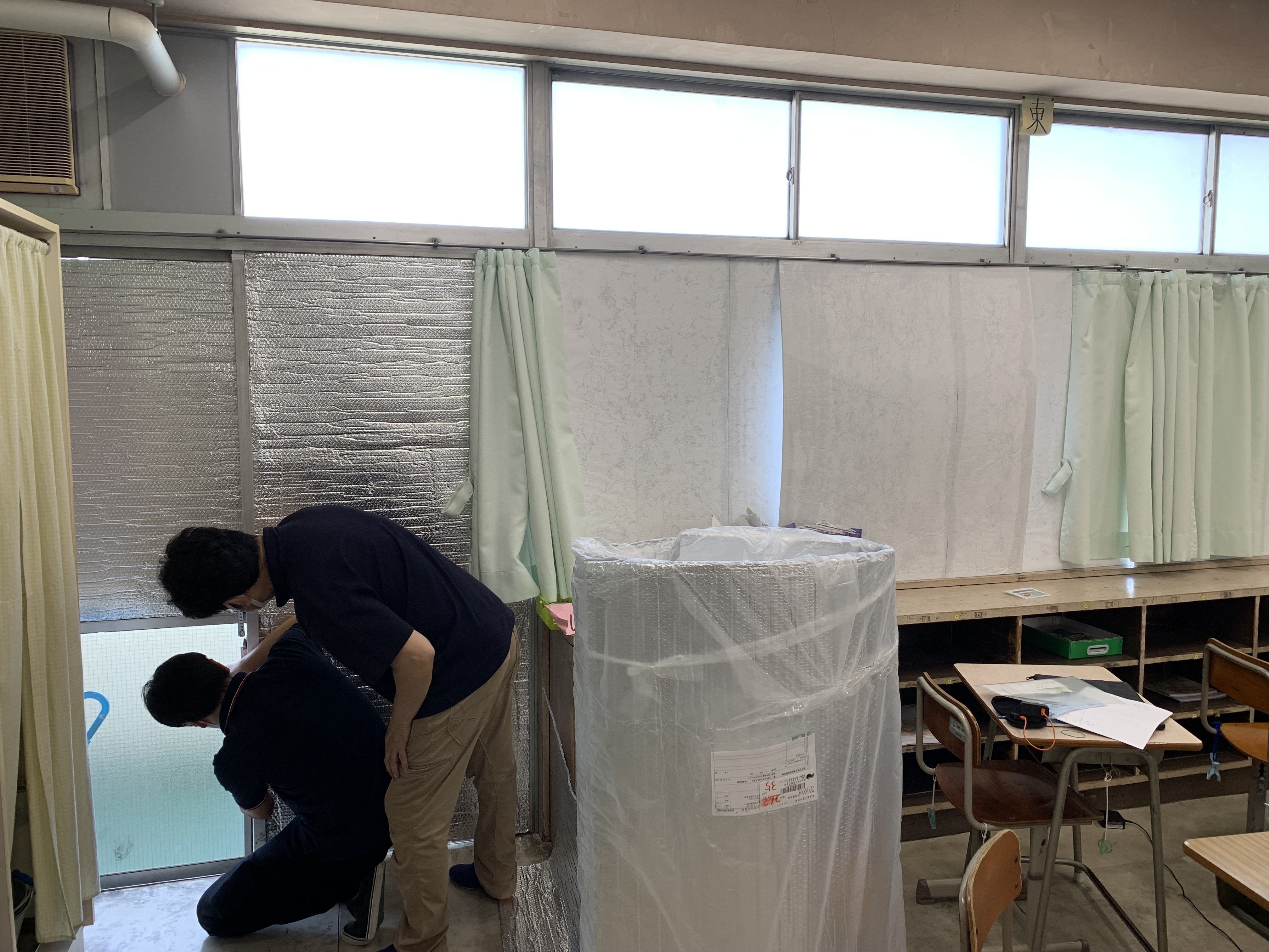 ★4年1組と同じくらい暑い2組&3組にも、窓面の遮熱パネルが設置できました。