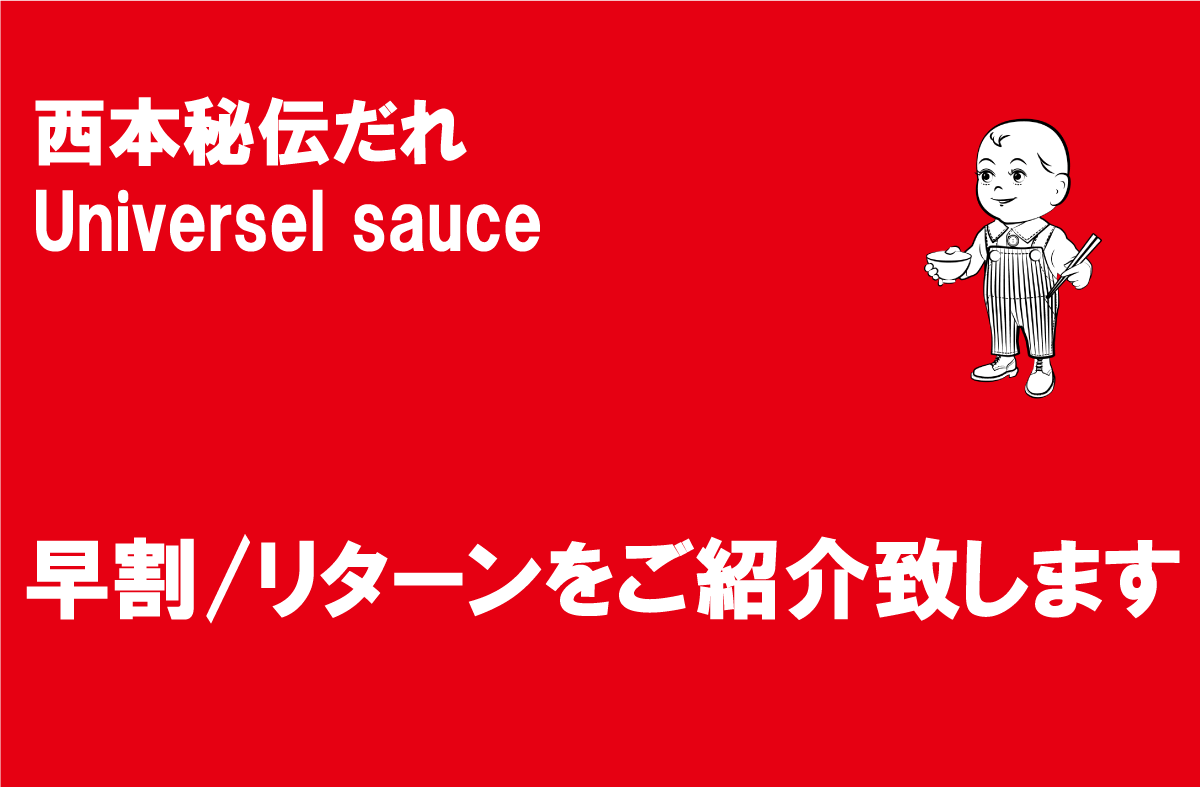 西本秘伝だれ ニユバーサルソースの販売を約400本に設定してございます。