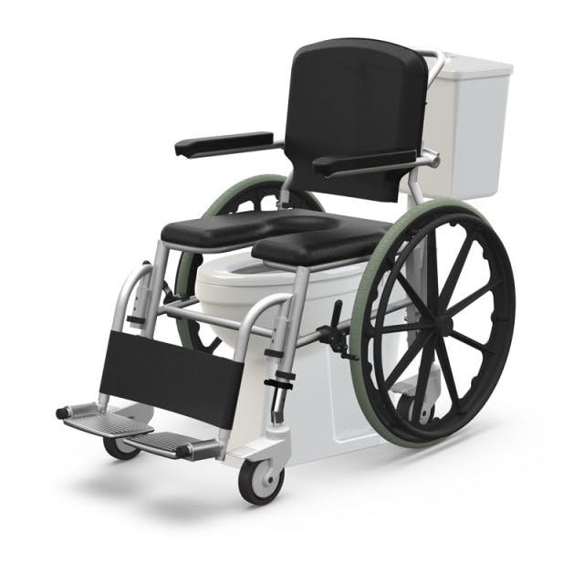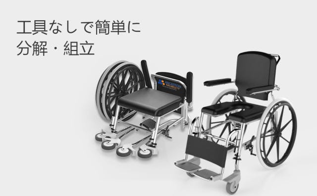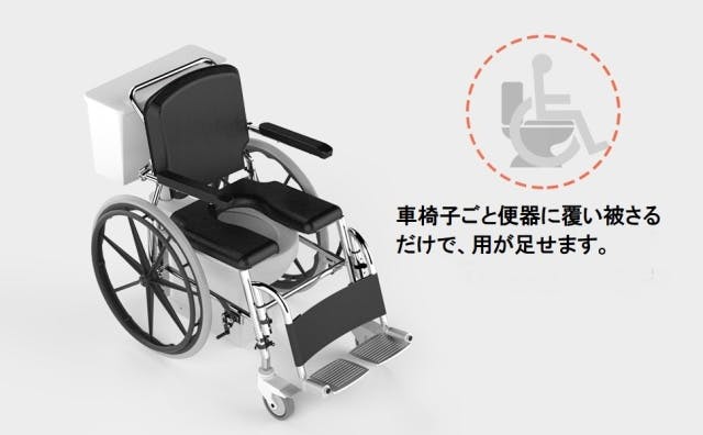 ご高齢やお身体がご不自由な方が、ベッドから車椅子に容易に乗り移ることができ、そのまま車椅子ごとトイレの便器に覆い被さり、用を足すことができる高機能の車椅子です。