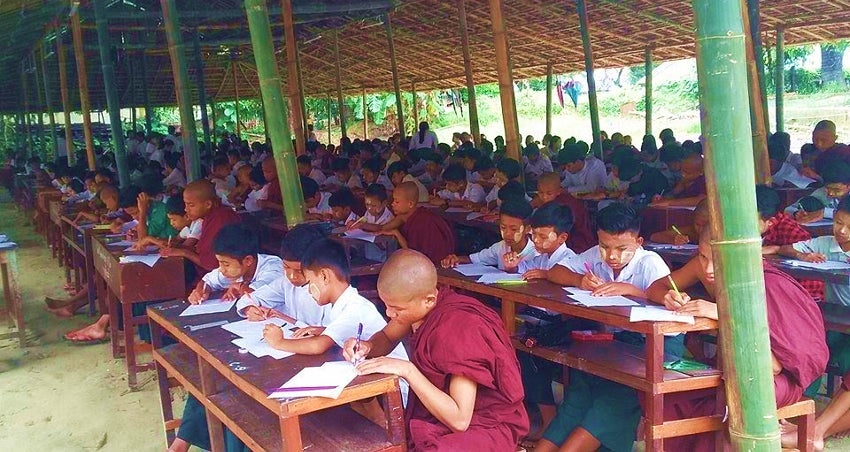 これはラカイン州タンドゥエ寺院学校の教育支援の写真です(ラカイン州タンドゥエ寺院学校教育支援について)