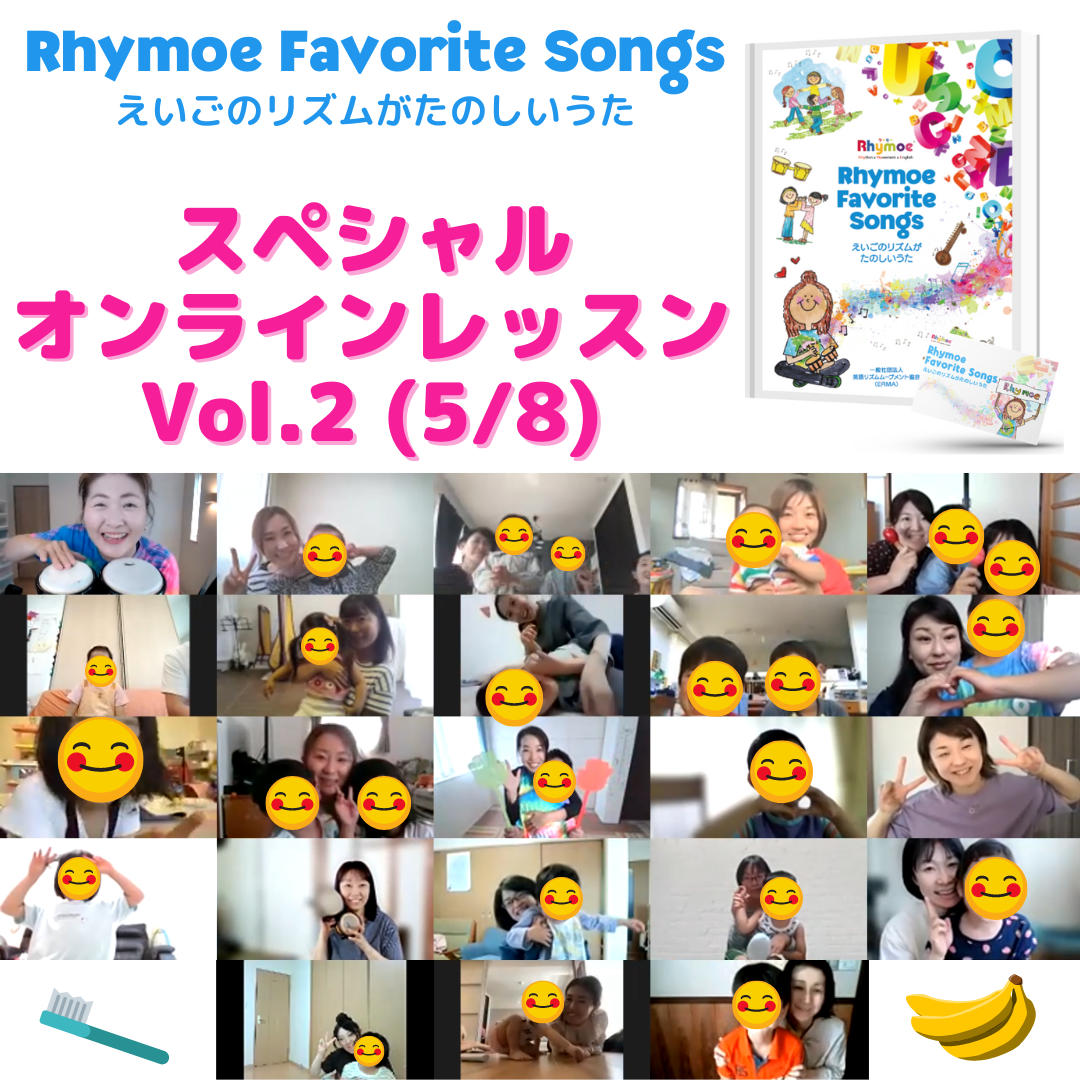 2022/11/29 08:00リターンの一つである「Rhymoeスペシャルオンラインレッスン」を3回に分けて開催しました!今回は出版した「Rhymoe Seasonal Songs えいごのうたがたのしいきせつのうた」に収録した曲をたくさん使った、60分盛りだくさんの内容となりました!おてんきの歌を歌ったり、でんしゃごっこをしたり、アヒルさんやサメに会ったり…かと思えば、ポップコーンを食べたり、雪遊びをしたり…季節を感じられる、シンプルで、思わずいっしょに口ずさんだり、手遊びをしたくなる歌をたくさん体験しただけたと思います。1作目のFavorite Songsと同様、ソングブックの各曲のページには、英語の歌詞、日本語訳、曲の解説、かわいい手描きのイラストが掲載されています。それだけでなく、それぞれの歌をどのように楽しめばいいかがわかるデモ動画が見れるQRコードも掲載しています!あるお子さんは、自分でソングブックを開き、好きな曲のページのQRコードをママのスマホで読み取っては踊り、また別の曲のページのQRコードを読み取って踊る…という楽しみ方をしてくださっているそうです!Seasonalソングブックの巻末には、全38曲すべてのデモ動画が一度に見れるプレイリストのQRコードもありますので、お使いくださいね。【 オンラインレッスンにご参加いただいた方からの嬉しいご感想】「よしみ先生のパワフルさを1時間感じっぱなしでした。子どももずっと楽しくリズムに乗っていました。親もどういう風に関われば良いのか分かったのでまたやってみたいと思います。ありがとうございました! 」「よしみ先生のライモーはいつ?と子どももずっと先生のレッスンを楽しみにしていました!seasonal songsの本の内容をたくさん使ったレッスンで、どれも楽しかったです。親子一緒にたくさん歌い、おどり、笑い、とったも楽しかったです。 」「今日のオンラインレッスン、とても楽しかったです!いっぱい歌って踊って、そして笑って、あっという間の1時間でした。特に電車ごっこが、親子3人で走り回ってかなり盛り上がりました!お陰様で汗だくになりました(笑) 3歳の息子は途中居なくなったりもしましたが、気になる曲があると戻ってきて真剣に聞いていました。 5歳の娘は、終始ノリノリで初めて聞く曲でも一生懸命真似していました。終わった途端「もう一回!」というので「もう終わりだよ〜」というと「じゃあ明日も!」と言うので困りました(笑) 」「レッスンとても楽しかったです。Rhymoeのおかげで、英語好きな子になりました。ソングブックをたくさんきいて、歌えるようにしたいと思います。これからも応援しています! 」「本日はありがとうございました。オンラインでこどもの集中が続くのかが心配でしたが、思っていた以上に楽しんでいた事が嬉しかったです。終わった後も鼻歌で歌っている様子を見ると微笑ましかったです。 主人も英語でのリズムの大切さを実感しており、歌って踊るレッスンには感激していました。普段の遊びの中でも活用させてもらいたいです。 」「いつもは小2のお姉ちゃんも一緒なのですが今回は4歳の次女と2人で全力で楽しませていただきました。レッスンが静と動の絶妙なコンビネーションのため、全力で歌って踊って、座って集中することが4歳ながらできていて嬉しく思っていました。いつもお姉ちゃんと2人だったので我慢していたのか?!4歳児が思いっきりママに甘えており、熱い幸せな時間を共有できました〜 心から楽しかったです」「今回は人数も少なかったこともあり、名前をたくさん呼んでもらえてうれしかったみたいです。1日中ライモーの曲を誰かが口ずさんている、そんな時間を過ごさせていただきました。 新しいお気に入りの曲もできたようなので、またたくさんソングブックを聴いて楽しみたいと思います。 」「本当に楽しかったです!オンラインでもこんなに親子で楽しんで参加できるのはライモーならではだと思います。子どもが小さい時にライモーに出会えて本当にラッキーだし、ハッピーです!」「『今日楽しかった?』 と聞くと、『たのしかった』 『あしたらいもーなの?』 と答え、息子が楽しんだ様子が伺え嬉しかったです。また、終わった直後に”pat”と言っていたので、warm-upの動画を見せると、レッスン中はやらなかった動作も真似することができました。やってみたい!につながるレッスンをありがとうございました!」「子供たちが起きられなかったり、寝ぼけていたりの我が家でしたが、ライブで参加できたことがとても良かったです。英語のリズムを体感できる楽しさが溢れている授業で、初めてのライモーを楽しませていただきました。音楽を聴くと体が動くくらい、ライモーのソングブックに親しむことができると良いです。よしみ先生のレッスンがとても楽しかったので、ぜひまたレッスンに参加できる機会があると良いと思いました。楽しいソングブックを作成してくださって、ありがとうございます。 」「息子は、今日は画面外にい