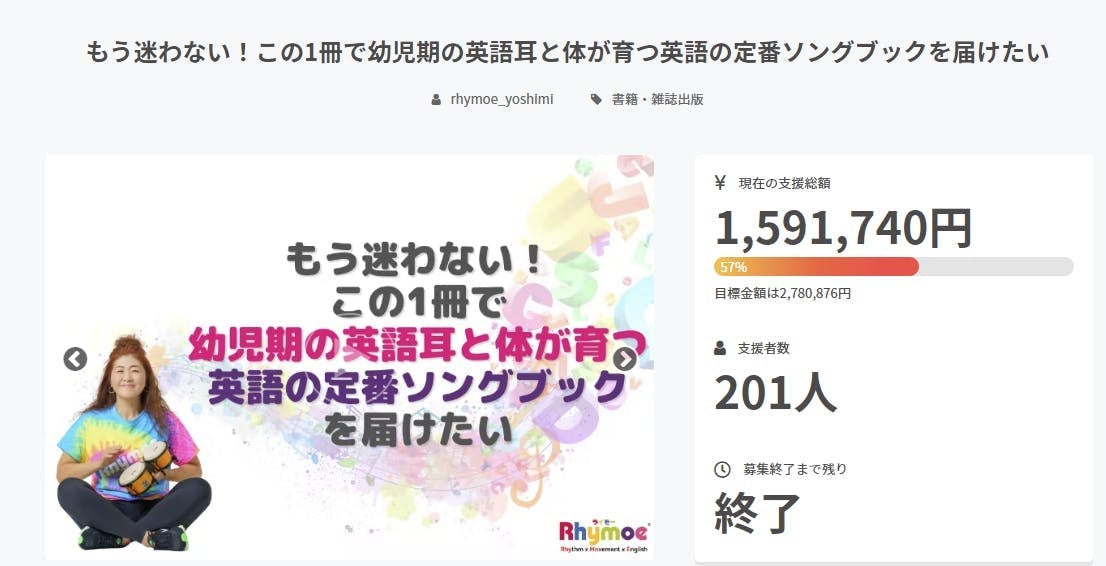 ソングブック第1弾「Rhymoe Favorite Songbook えいごのリズムがたのしいうた」発売時のクラウドファンディングで、レッスンやイベントを通じての、ご支援下さった方との交流は、クリエイターである私にとってだけでなく、認定インストラクターや、Rhymoeトレーニング修了講師の皆さんにとっても貴重な体験となりました。