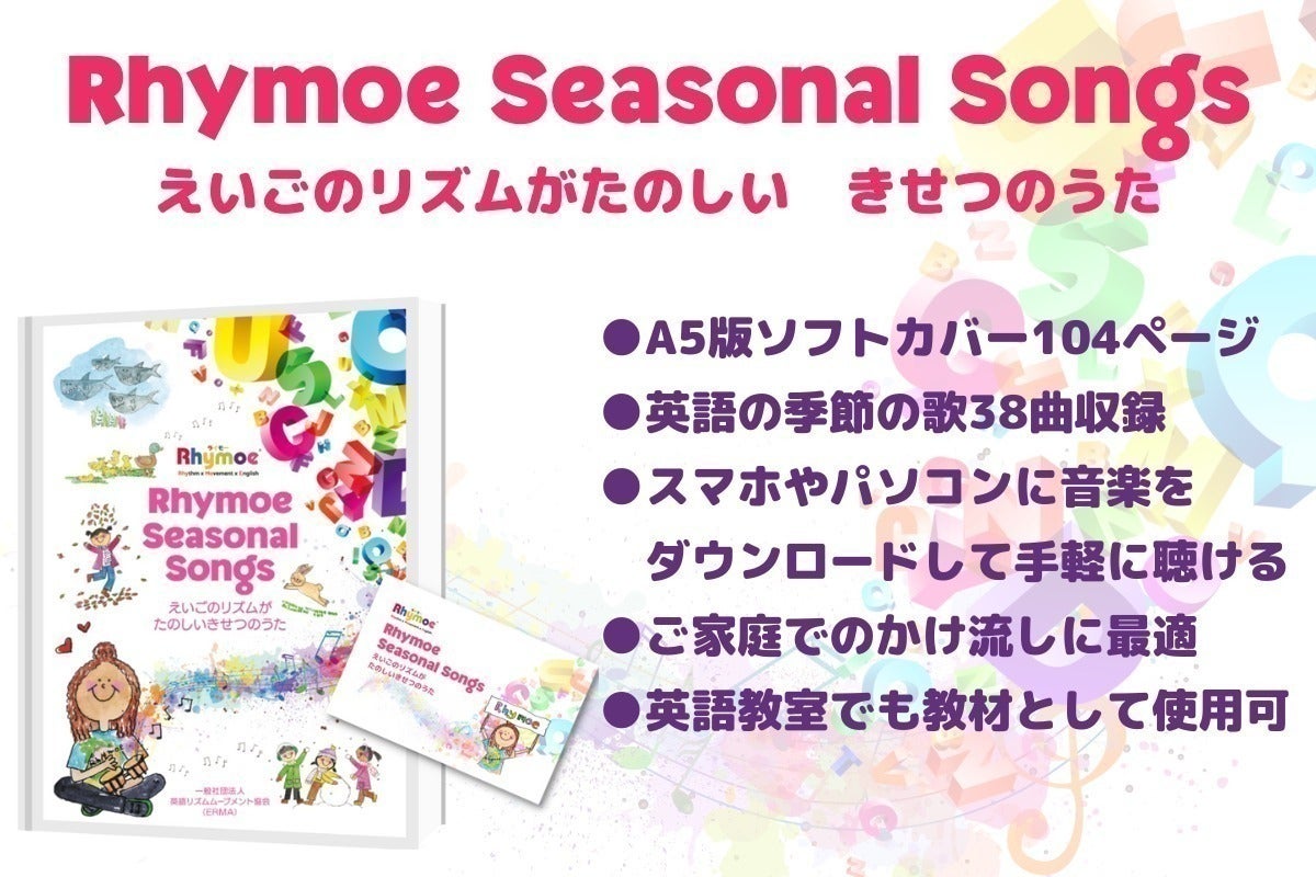 第2弾「Rhymoe Seasonal Songs えいごのリズムがたのしいうた」は、第1弾と同じ体裁をとり、手に取りやすい大きさのフルカラーのソングブックに、手軽に聴けるダウンロードカードを付属しました。