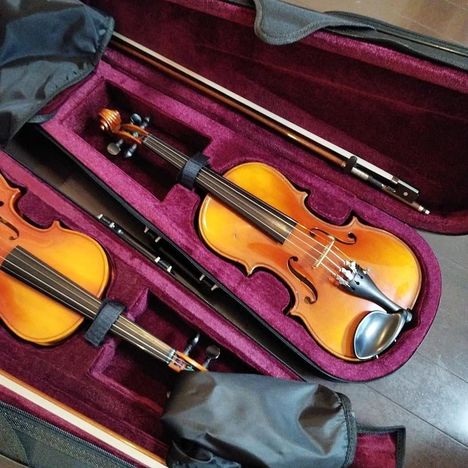 ポルタでは、寄贈いただいた楽器の修繕を行っています。今日は、先日講師の先生が工房に持ち込んでくださって修繕を終えた1/2ヴァイオリン2台を、新しく購入したケースに収めました。リペア職人さんが、とても丁寧に見てくださり、ツヤツヤになった楽器には新しい弦が張られ、弓も毛替えをしていただきました。初めて触れる楽器はなるべく良い状態のもので、ストレスなく演奏して欲しいと思っています。息を吹き返したヴァイオリンも、夏の講座で子どもたちに触れてもらえるのを心待ちにしていると思います。