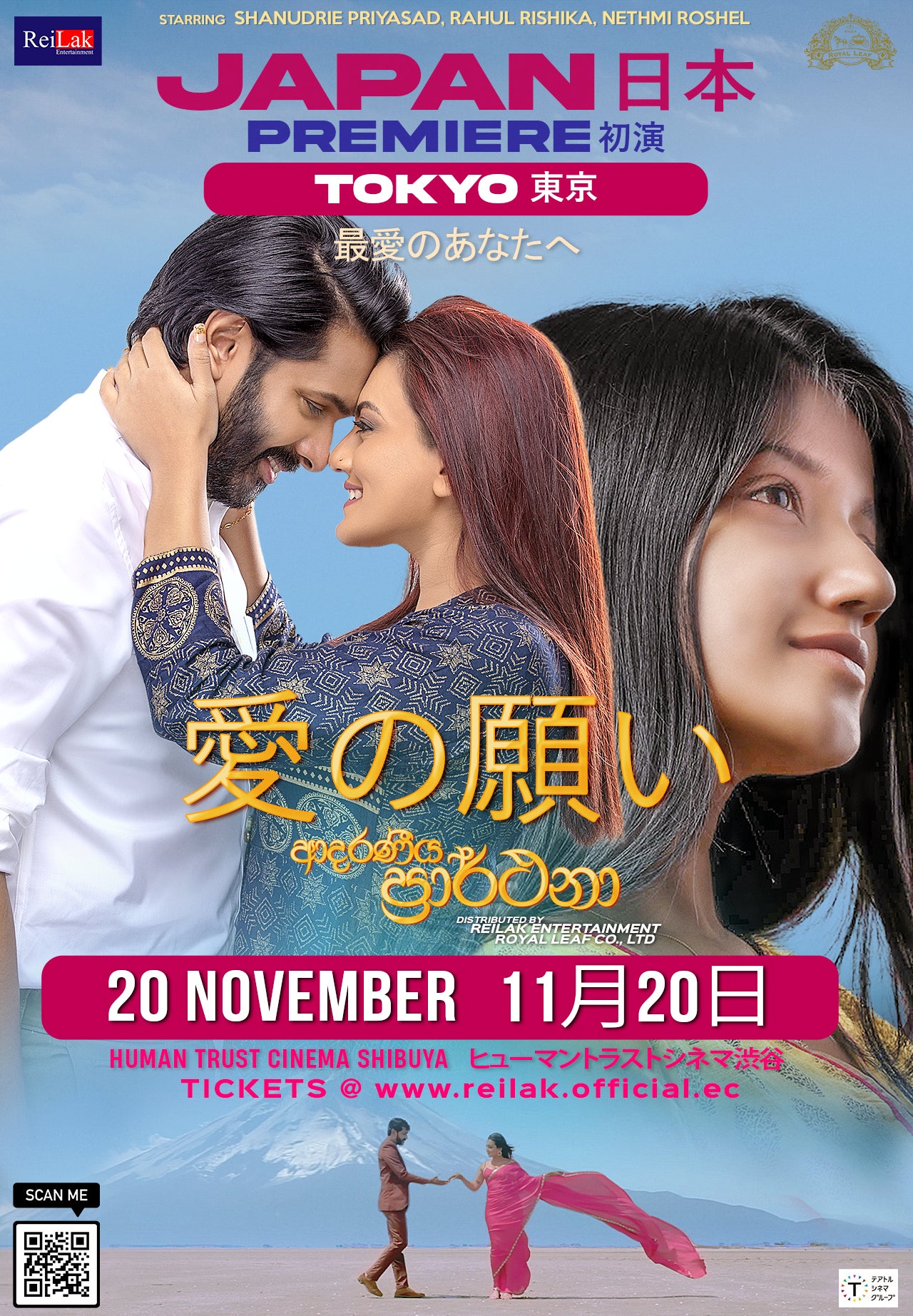 2022年11月20日、ヒューマントラストシネマ渋谷にて”Adaraneeya Prarthana”「愛の願い」の上映会を開催いたします。笑いあり、感動ありのラブロマンスミュージカルです!スリランカ映画が初めての方でも、きっと楽しんでいただけると思います。音声はシンハラ語で、日本語字幕が付きます。
