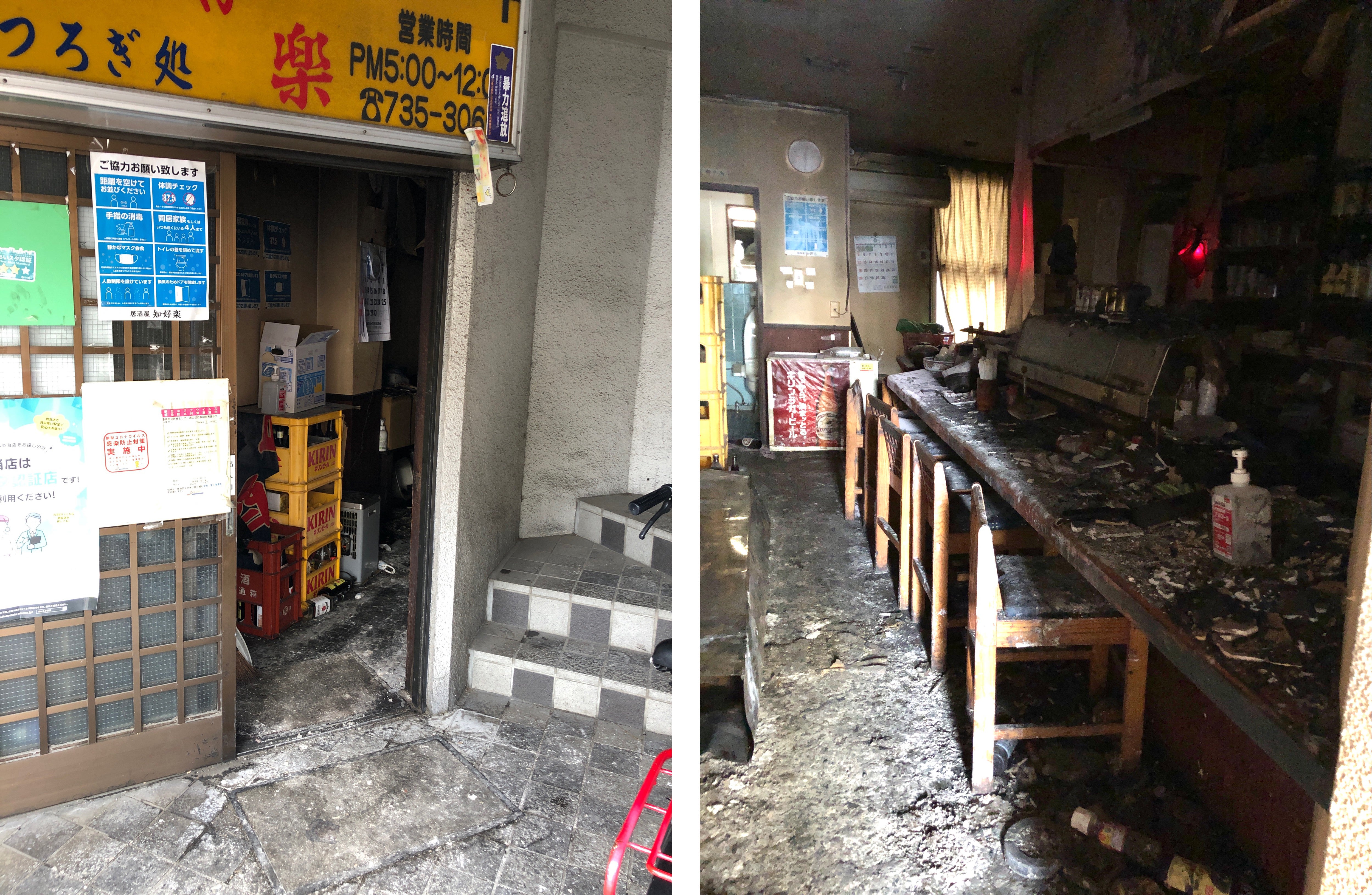 火災の翌日、現場の店舗を前に「何てことに..」「この先どうしたらいいのか」と茫然自失していた時にすぐに駆けつけれてくれたお客様たち。
