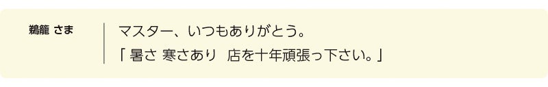 ここ2、3年のコロナの影響の際も、このまま続けられるか幾度か考えたこともありましたが、「火曜日だからあの方が」「あの方は毎日開店と同時に来るから」とお客様のことばかり気になってしまい、閑古鳥でも出来る限りの営業と時短要請に従って耐え続けました。 これも辛かった。本当に。