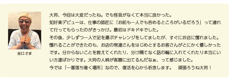 「俺、結婚したんだよ大将!」とわざわざ報告に来てくれた方。