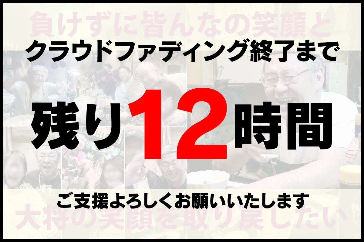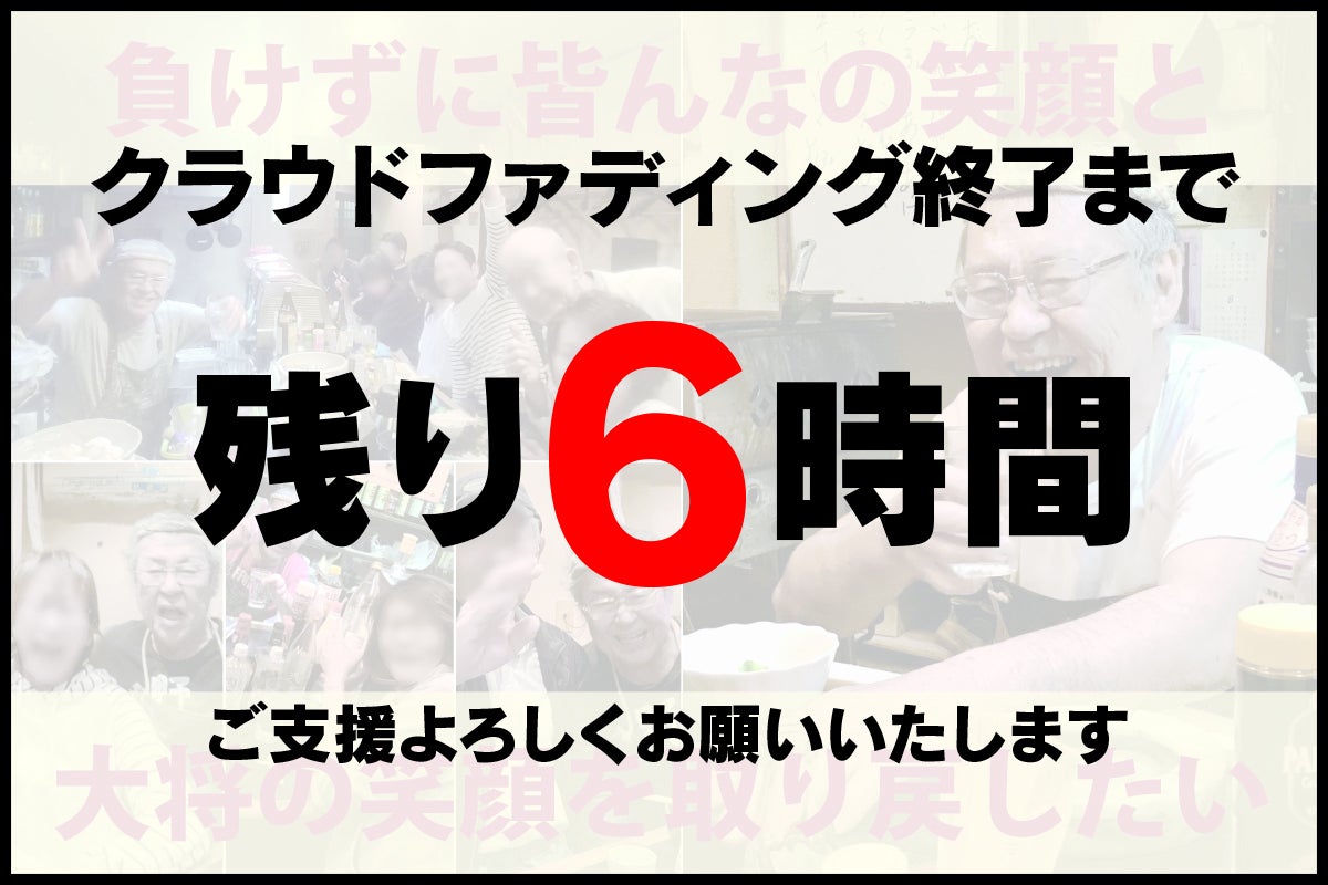 ご支援いただきました皆さまには、心より御礼を申し上げます。本当にありがとうございます。あと30分となりましたが、以下の応援でラストスパートに協力いただけたら嬉しいです!①https://camp-fire.jp/projects/view/606170 をシェア拡散。 twitterやInstagram、Facebookで拡散お願いします。②お友達やお知り合いなどに口コミでも結構なので本プロジェクトをご紹介ください。③クラウドファンディングに最後に追加のご支援を。 1,000円からご支援いただけます。諦めず必ず知好楽を再建します!どうぞ皆さまのご支援を、よろしくお願いいたします。