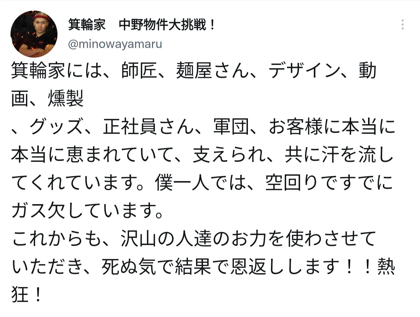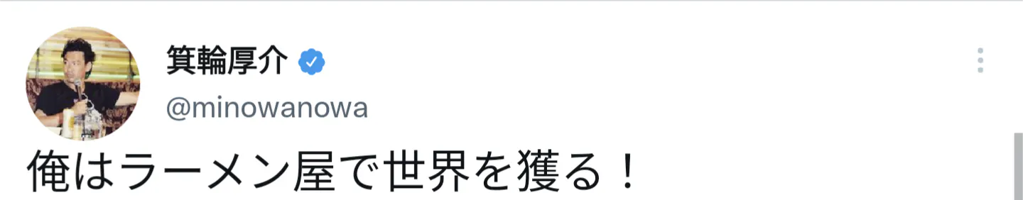 絶対にラーメン箕輪家を世界へ、そして東京で店舗を持ち、大繁盛させて、ラーメン箕輪家のコンセプトである
