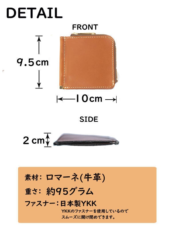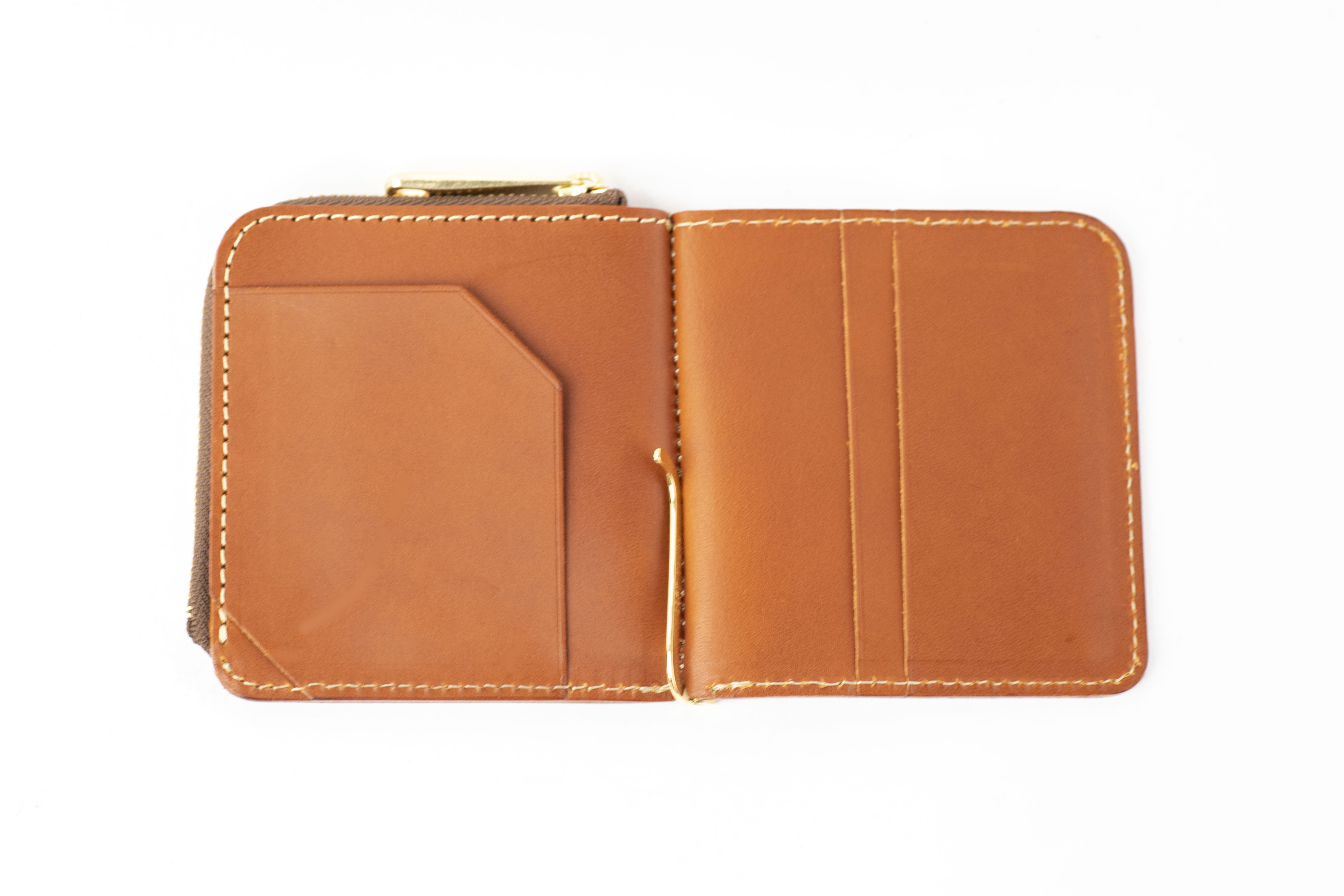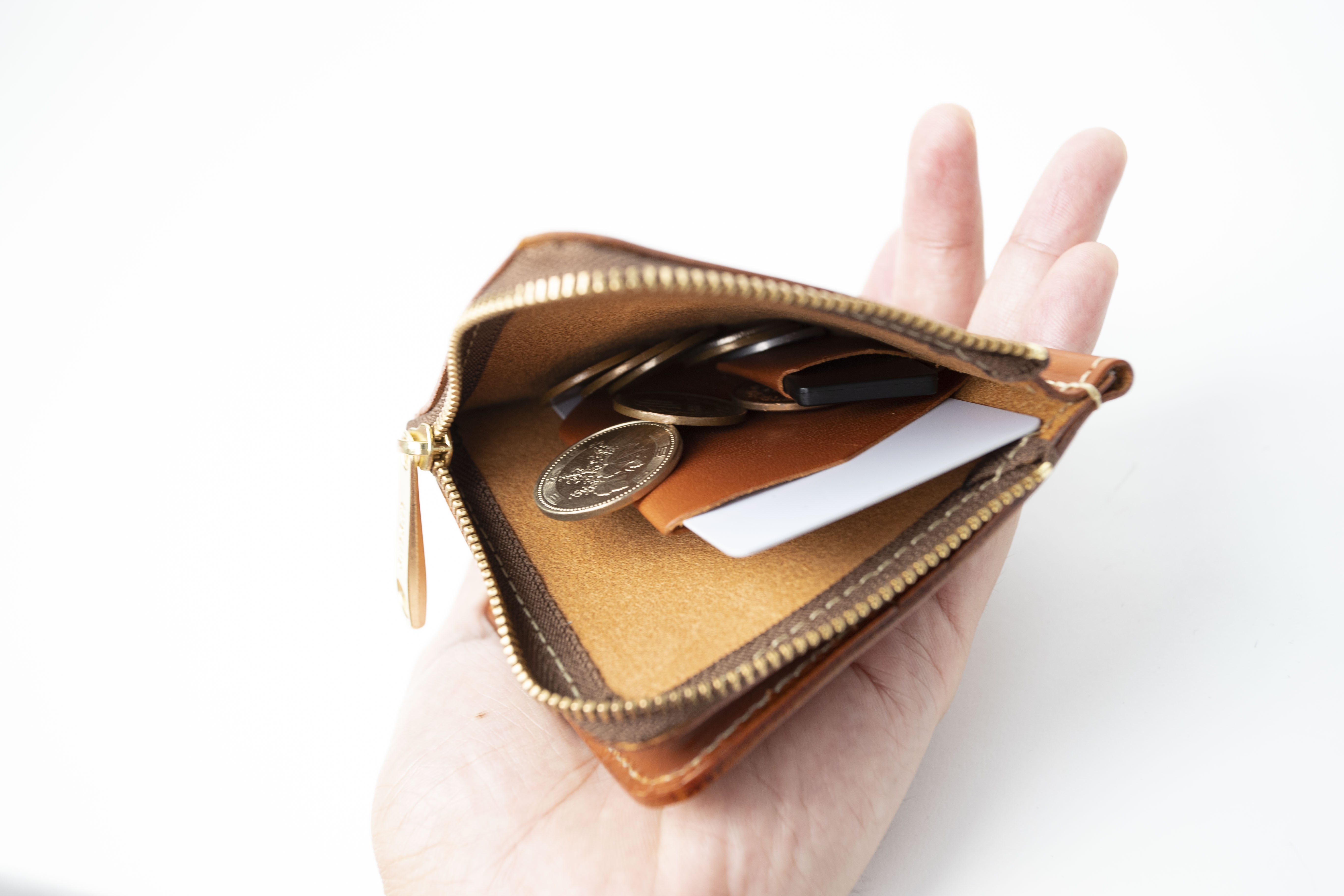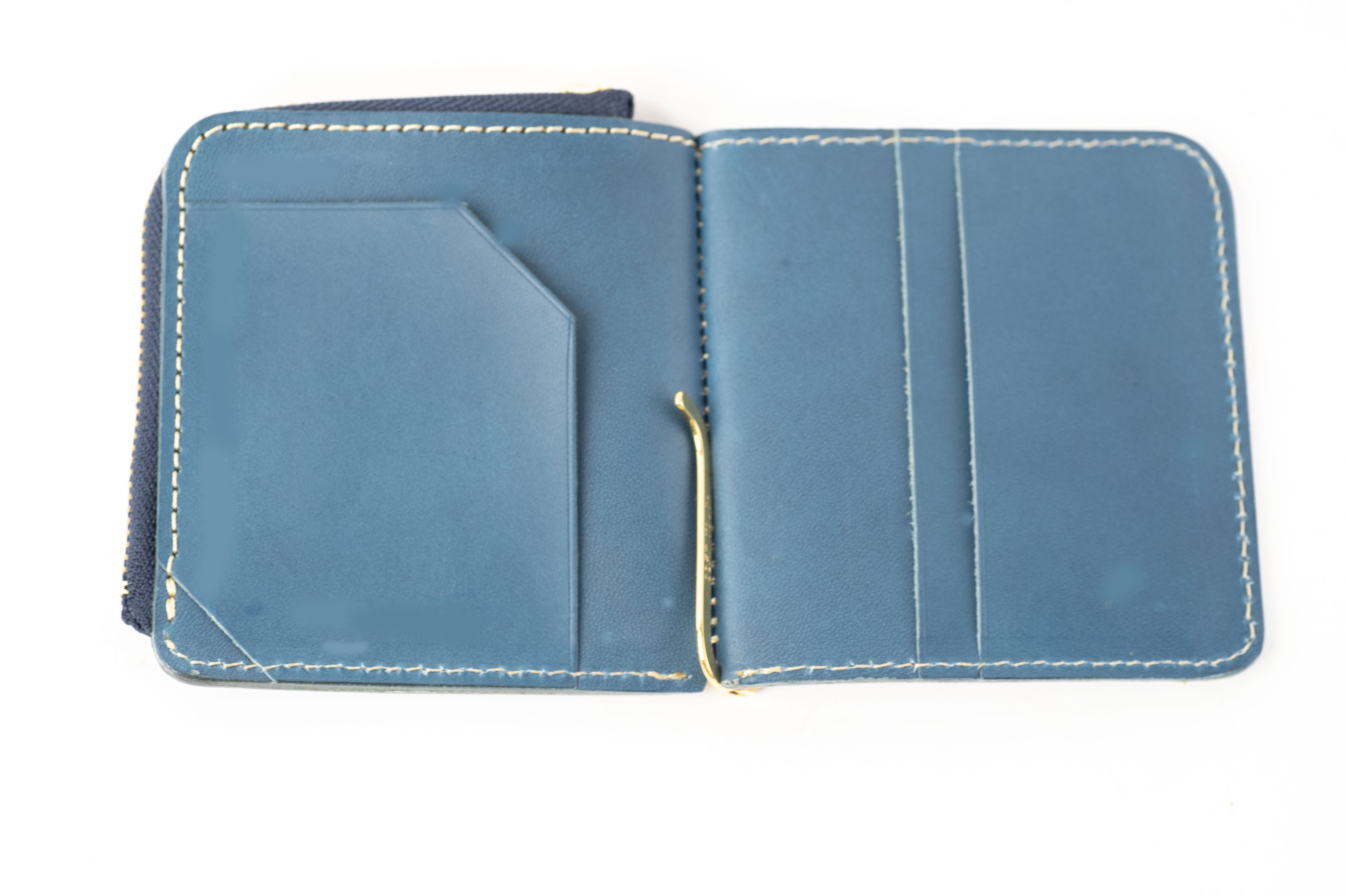 マネークリップタイプのお財布は小銭入れのないものが多いのですが、使いやすいL字ファスナーの小銭入れスペースを作ったので小銭もたくさん入ります。