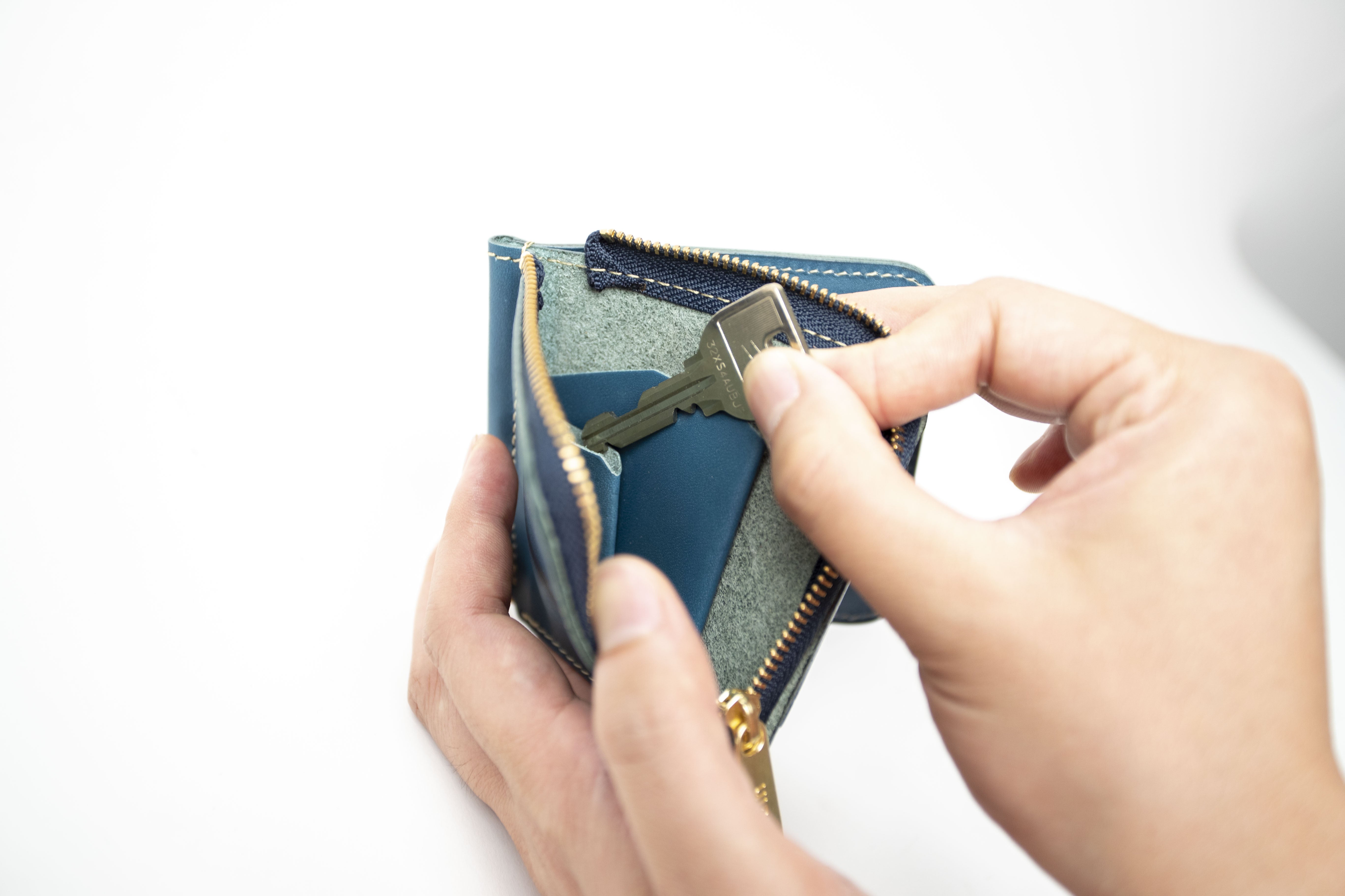 「この財布1つさえ持てば外出できる」そんなお財布にしたかったので、鍵も入れれて、『薄くても大容量』にこだわりました!