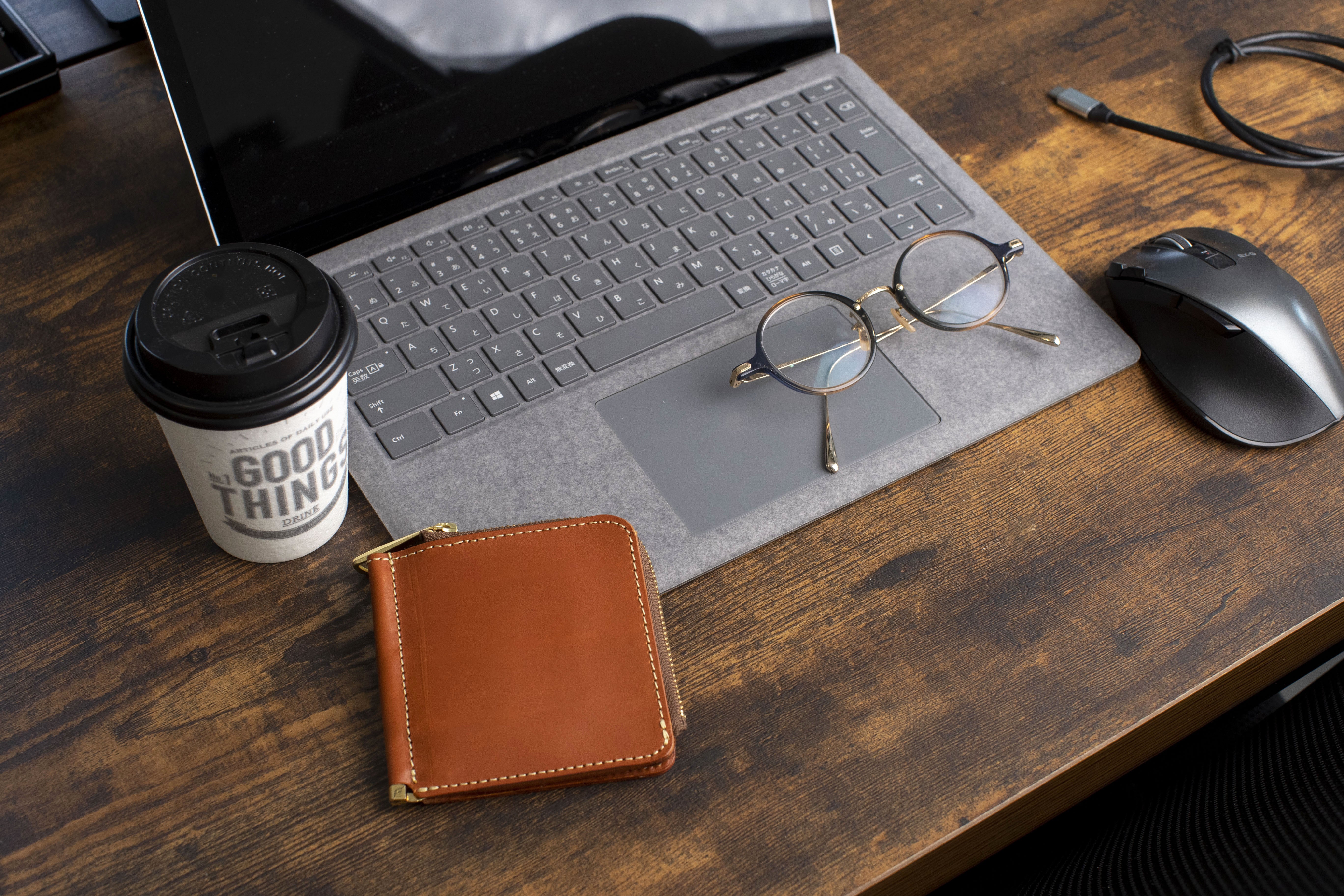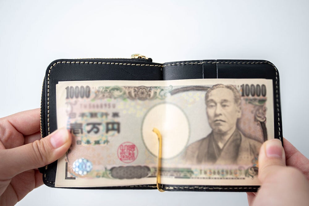 マネークリップ付きのお財布となりますので、お札はクリップに挟んで収納します。