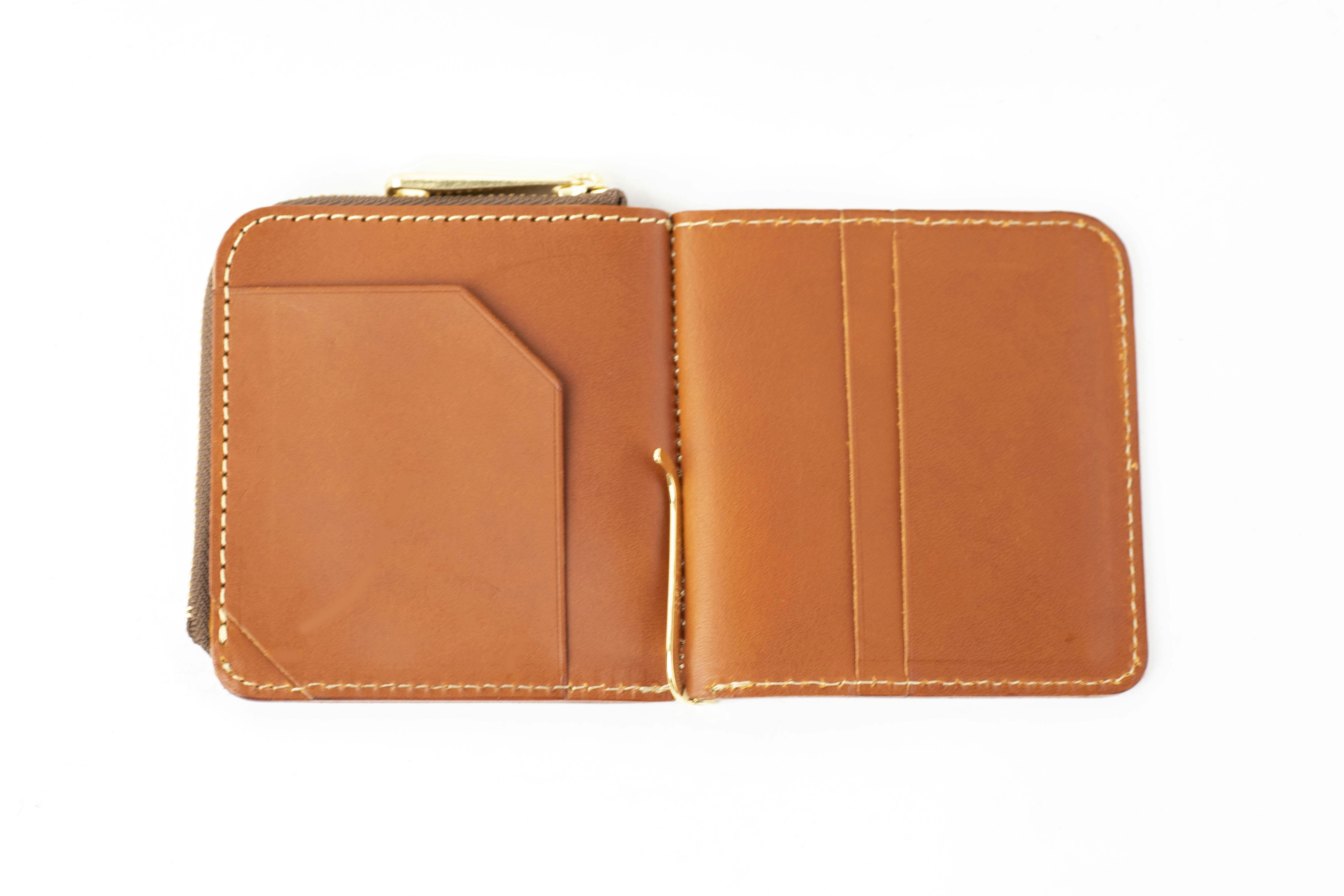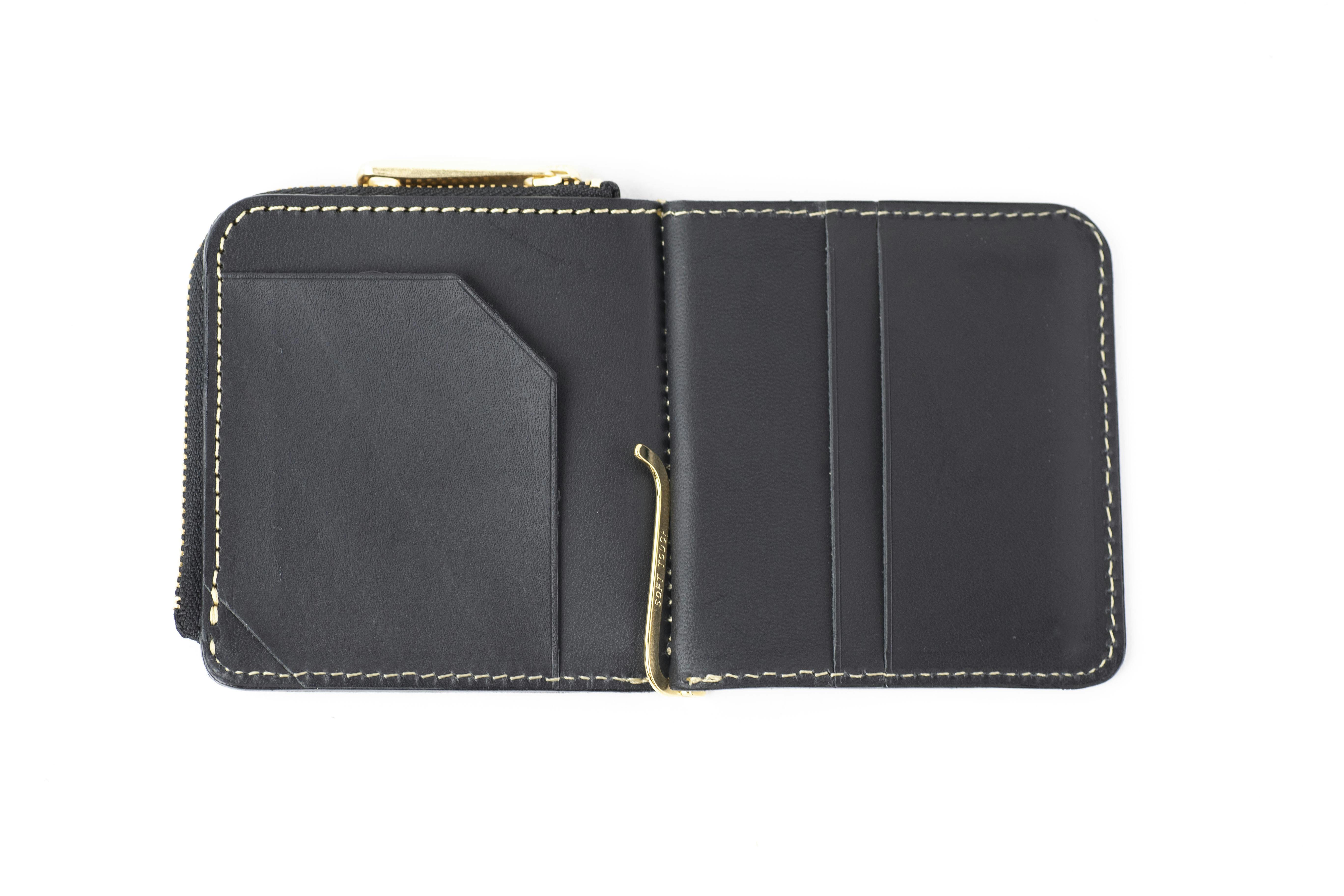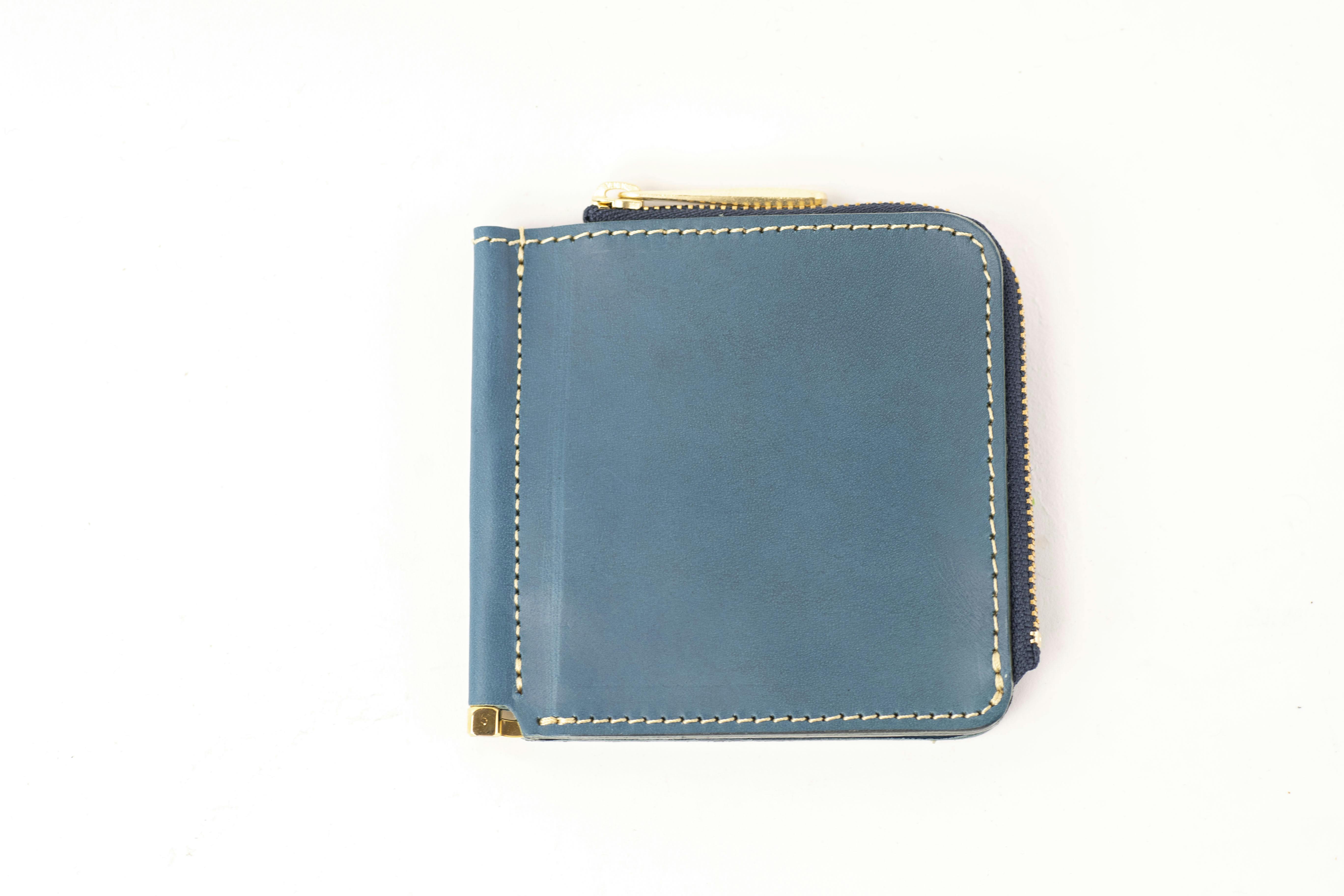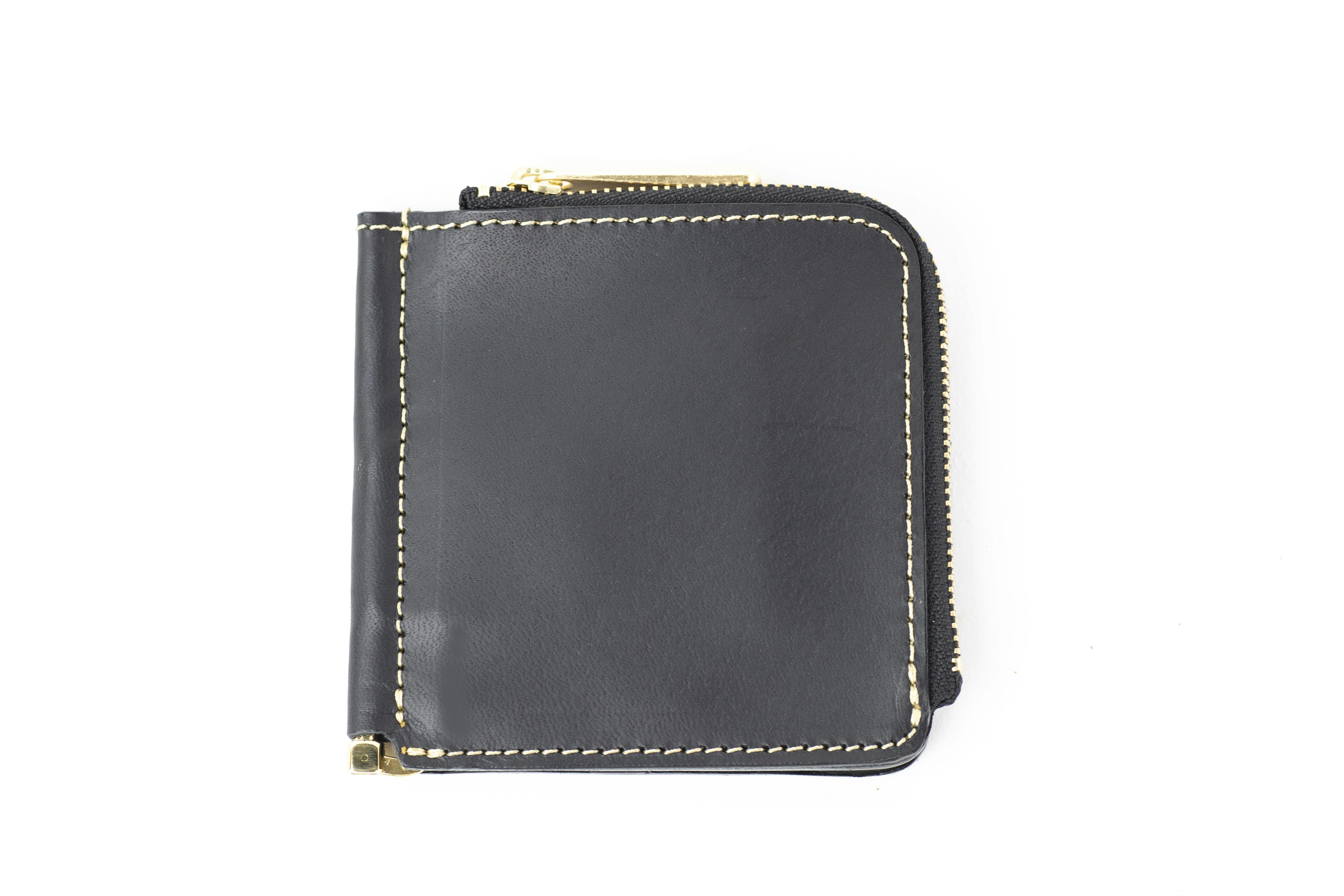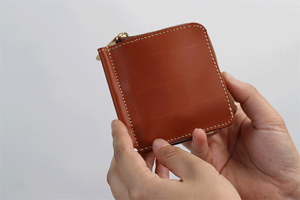 マネークリップタイプのお財布は小銭入れのないものが多いのですが、使いやすいL字ファスナーの小銭入れスペースを作ったので小銭もたくさん入ります。