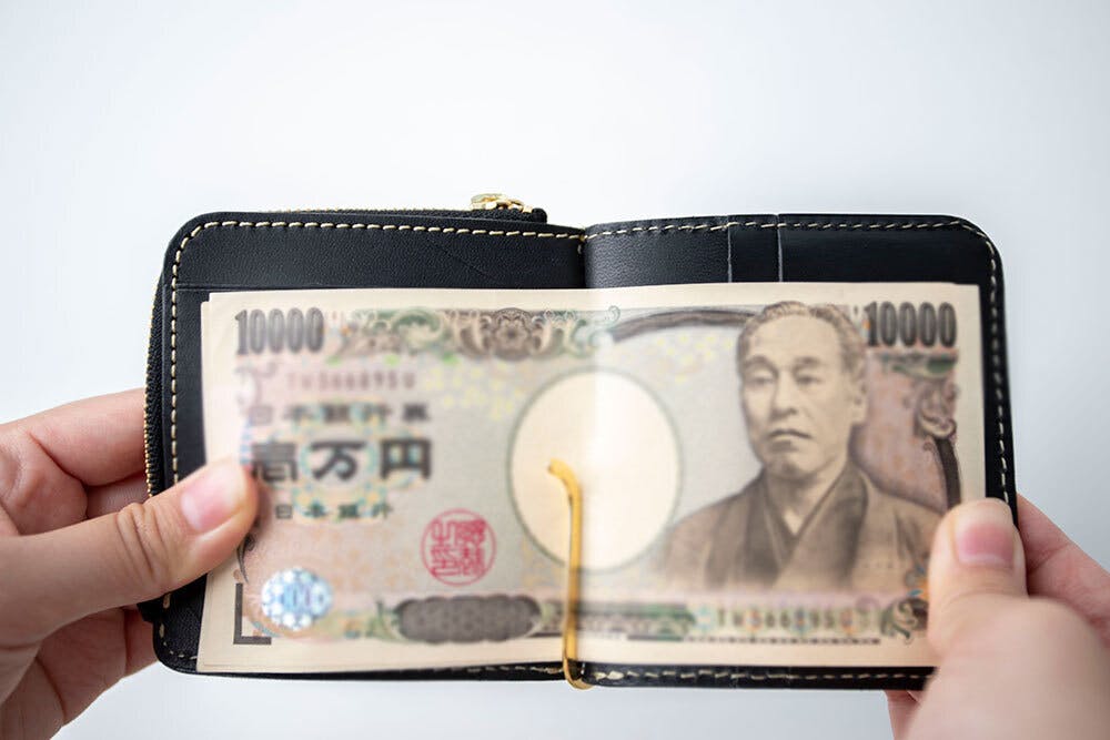 マネークリップ付きのお財布となりますので、お札はクリップに挟んで収納します。