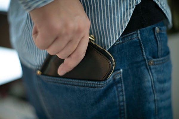 薄い財布なのでポケットにも引っかかることなくスムーズに収納できます。カジュアル、ビジネスシーンどちらでもお使いいただけます。