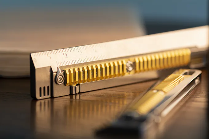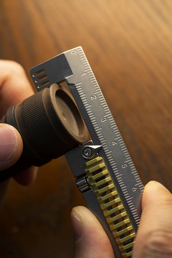 これは、バーニアノギス構造を持つ多機能クリエイティブチタン定規です。
