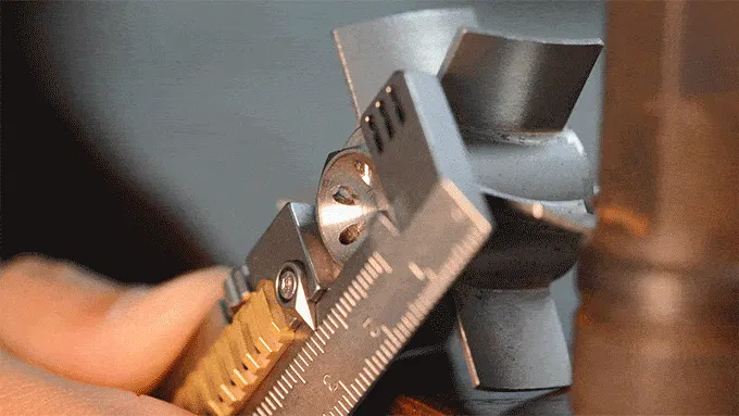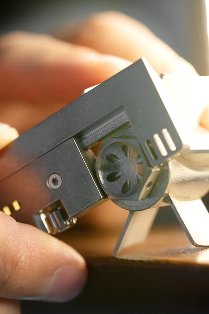 定規の下部に位置するロータリーノブ。ノブに深い溝があるので、ノブをねじ込むことでノブを締めたり緩めたりするのがとても簡単です。