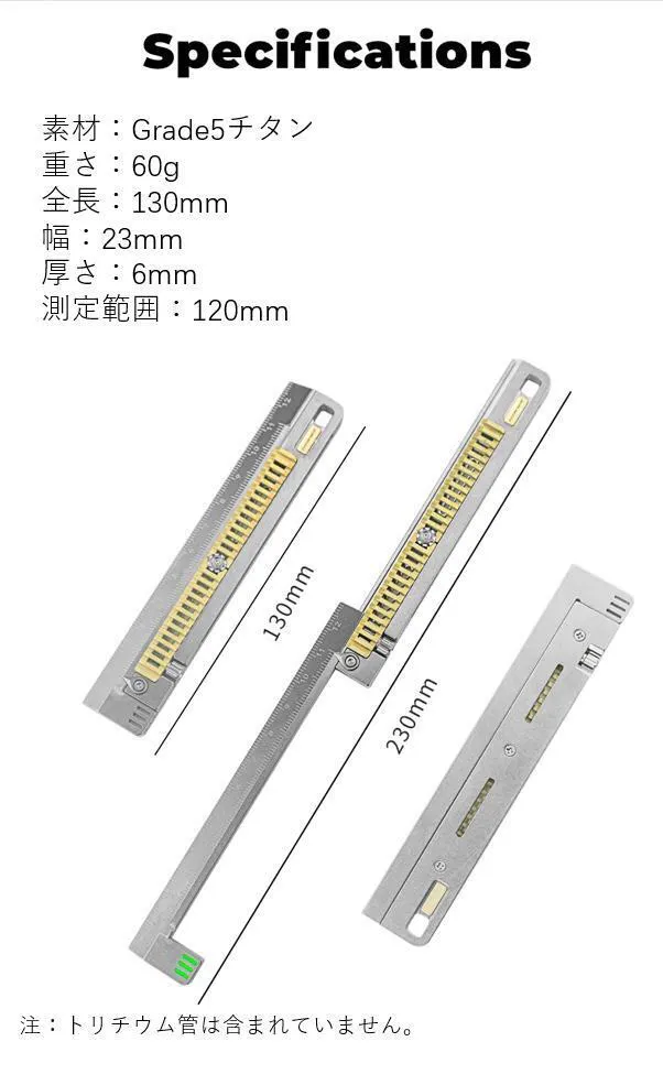 トリチウム管を装着穴が用意しておりますが、アジア市場では1.5 * 6mmトリチウム管のソースのサプライヤーを見つけることができませんでした。独自のトリチウムチューブまたはグローインザダークチューブを装着することが楽しめます。