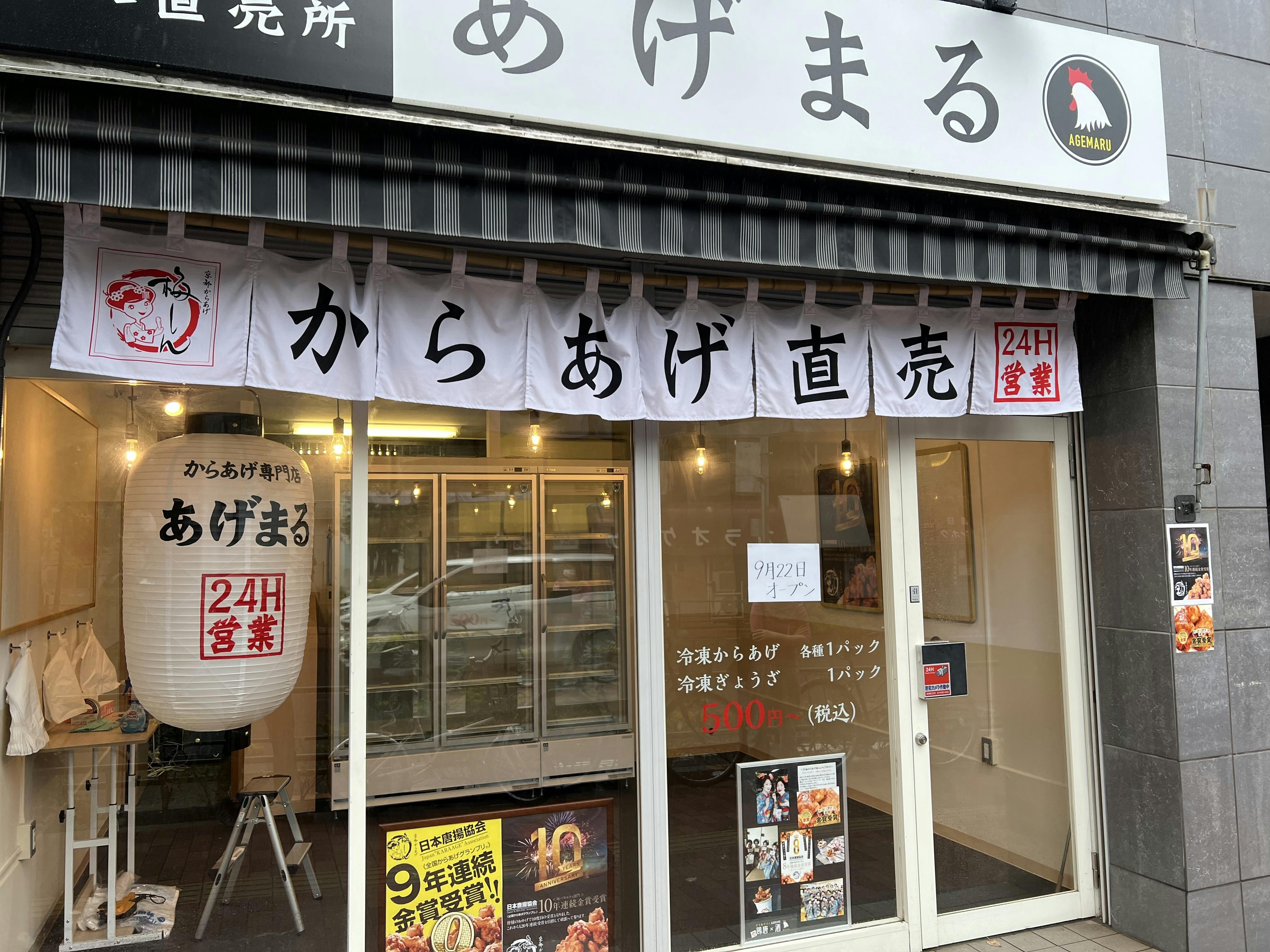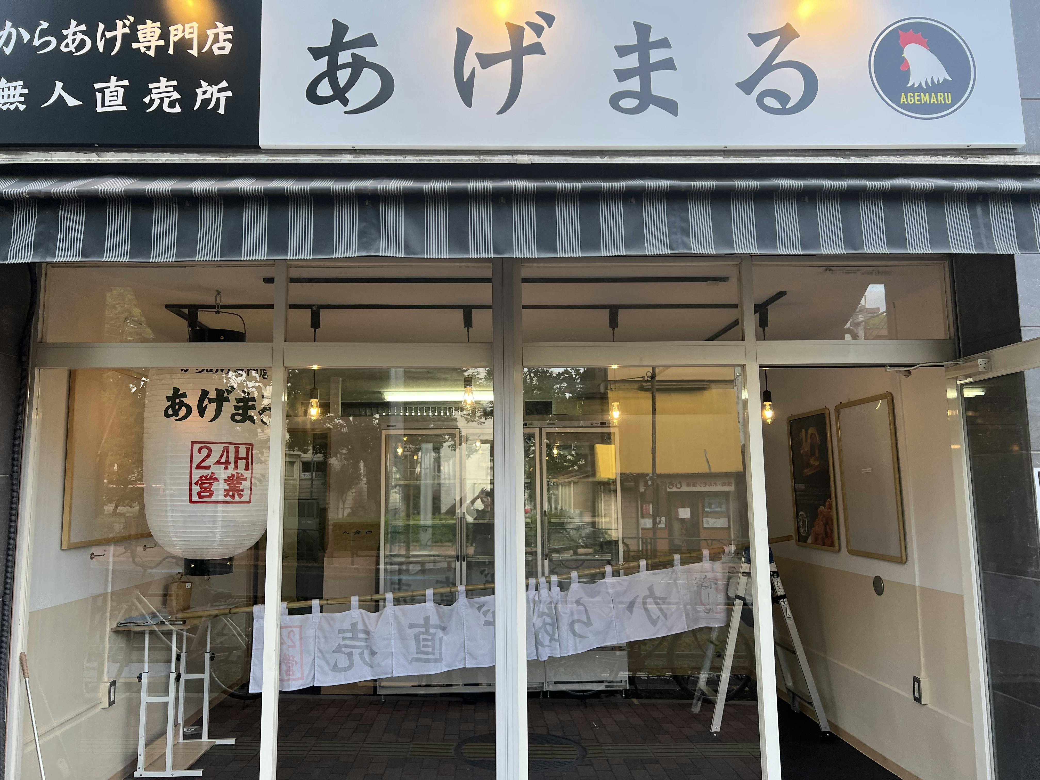 冷凍からあげ無人販売所「あげまる」*24時間営業 平和橋通り沿い、暖簾と提灯が目印です!