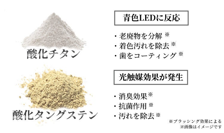 ピュアハ電動ハブラシとハミガキ粉で光触媒効果が発生し、ブラッシングすることによって様々な効果が期待できます。