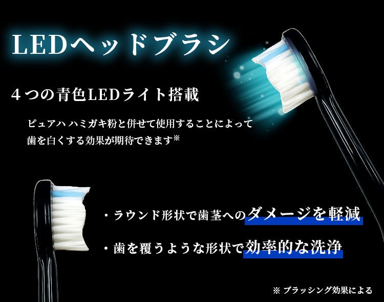 通常のピュアハ電動ハブラシでは青色LEDライトが2つでしたが限定モデルには青色LEDライトが4つ付いています。