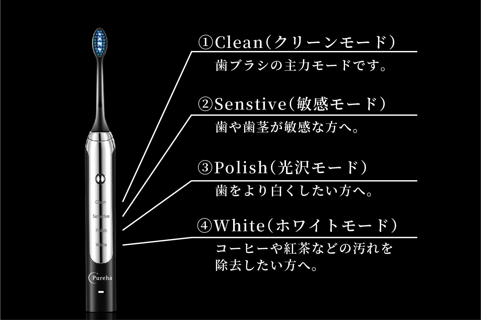 高速音波振動のパワーでいつものブラッシングをより効果的にします。また、敏感な方にもご使用いただけるように、今回は4つのモードをご用意しました。