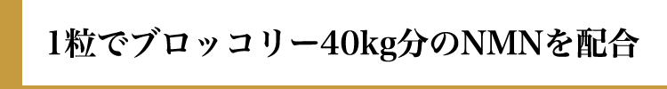 当社のNMNサプリは1粒に100㎎のNMNが配合されています。NMNはブロッコリーや枝豆、アボカドから摂取可能ですが、その量はごく微少です。食事で100㎎のNMNを摂取しようとすると、ブロッコリーを40㎏摂取しなければならないので、上手にサプリメントで補うことが効果的です。