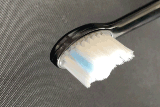 センシティブモードでは低振幅で歯ブラシが振動し、歯や歯茎を優しく洗浄します。