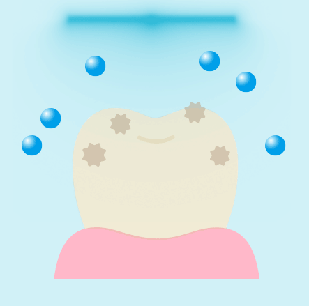 上記2つの光触媒成分の効果により、光を照射しながらブラッシングを行うことで歯の黄ばみや汚れを落とします。