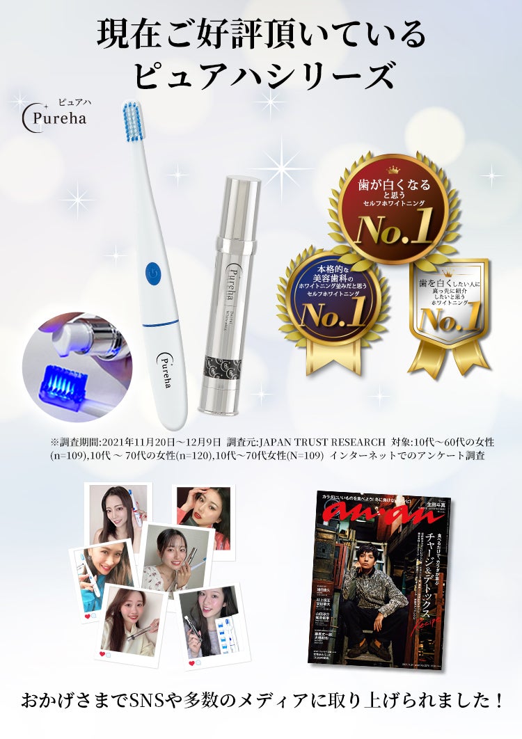 ホワイトニング効果※が期待できるハブラシとハミガキ粉。ピュアハが高スペック電動ハブラシにパワーアップいたしました。