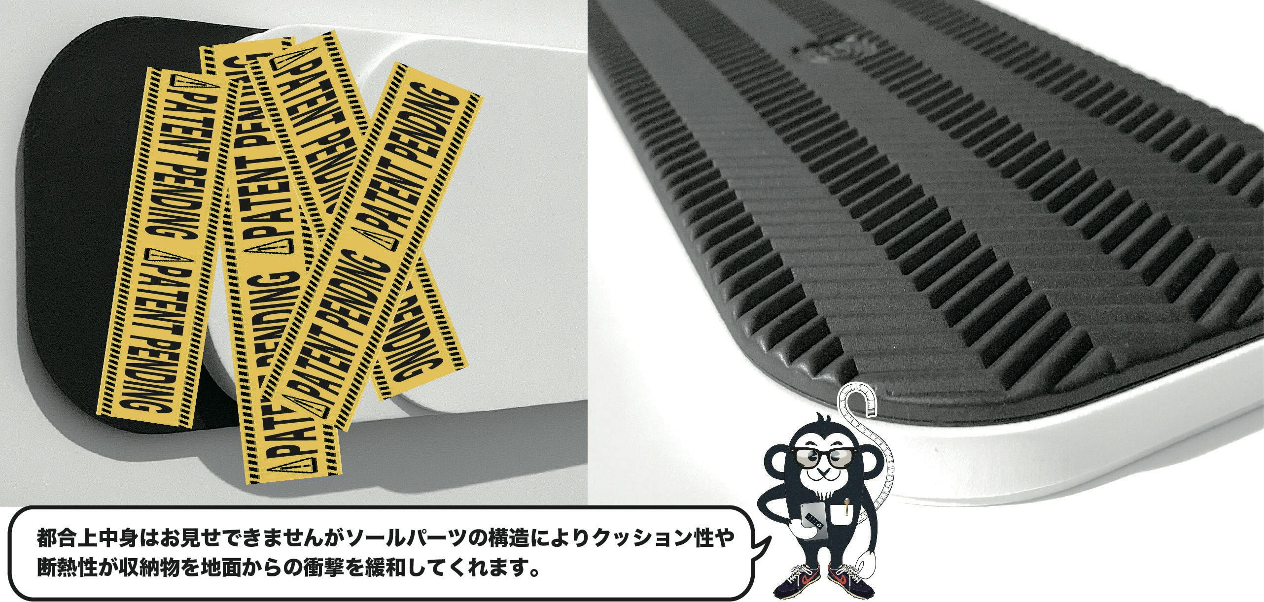 詳しく解説出来ませんが、スニーカーに使用しているEVA素材をカバン用に設計した特別なパーツです。