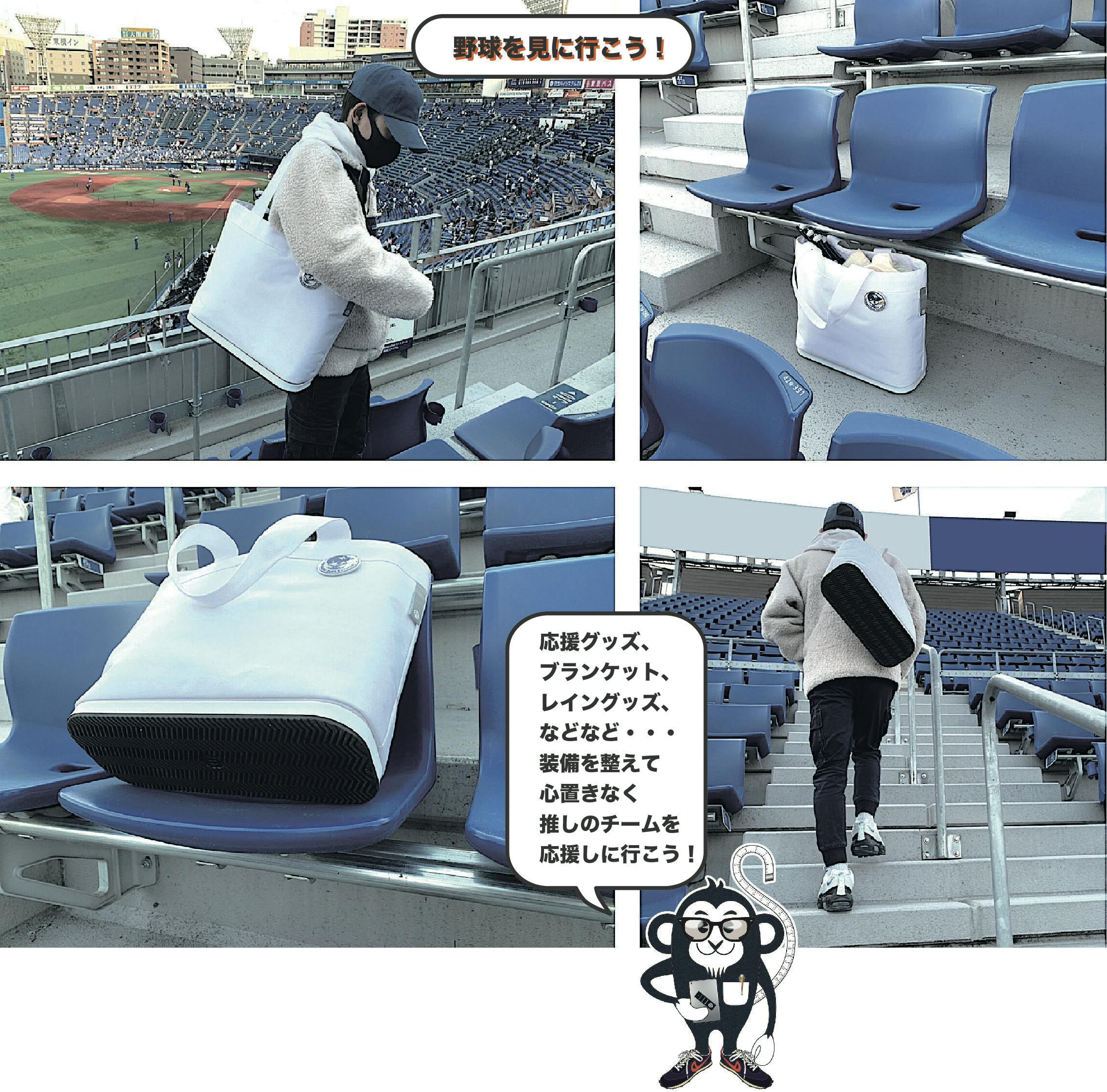 当初の目的はプロスポーツ(野球・サッカー等)をスタジアム観戦する為のバッグとして考案しました。