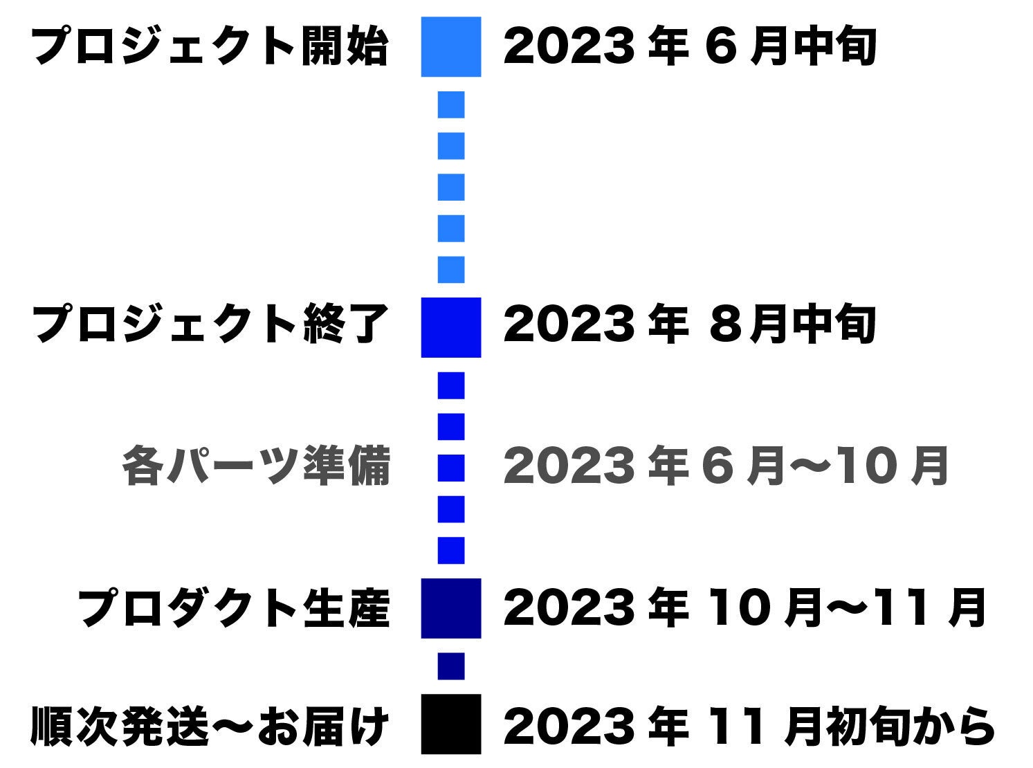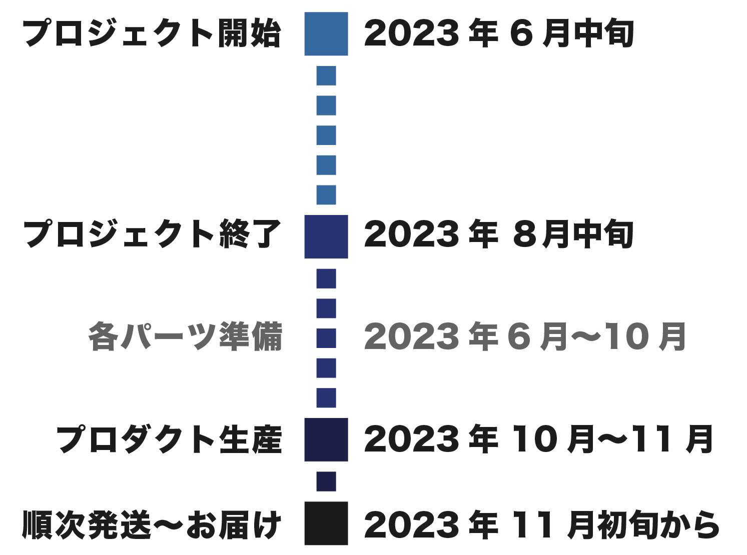 但し、開発・生産状況によって遅れが生じる場合がありますのでその際は当プロジェクトページ内の「活動報告」または購入者へのメール等で連絡します。