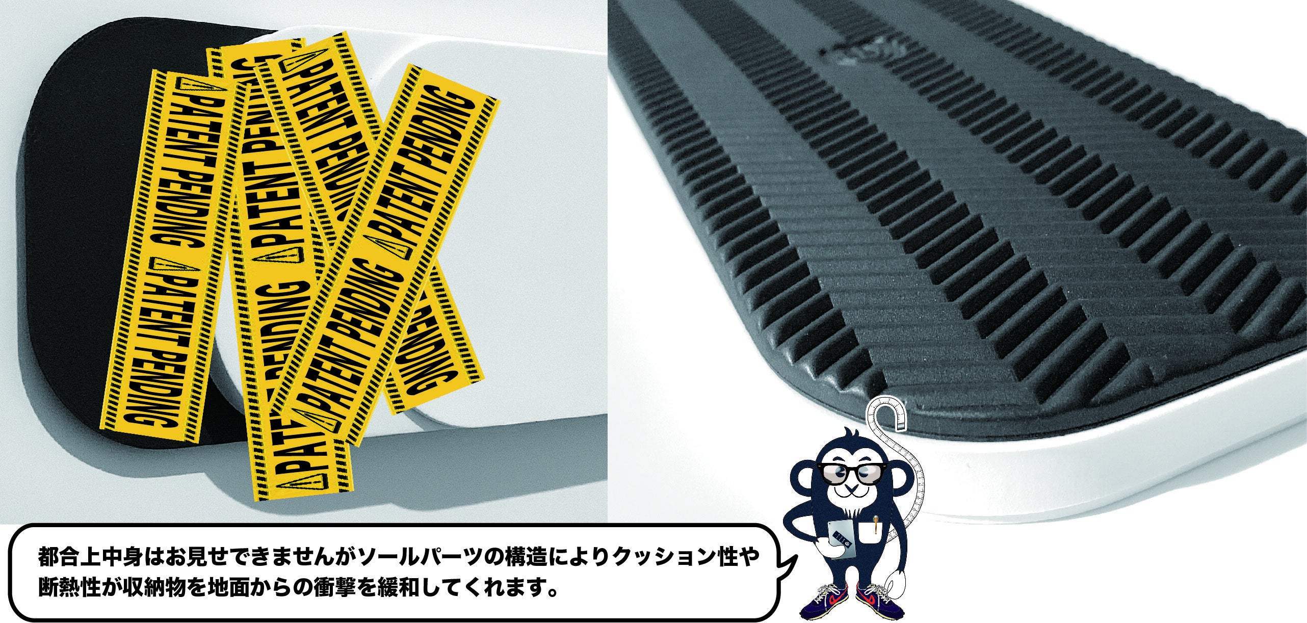 スニーカーをイメージさせる事で地面へ置く事への違和感を中和させソールは軽量感やクッション性もカバンに適合しますが開発時は試行錯誤し、特に軽量化には苦心しました。
