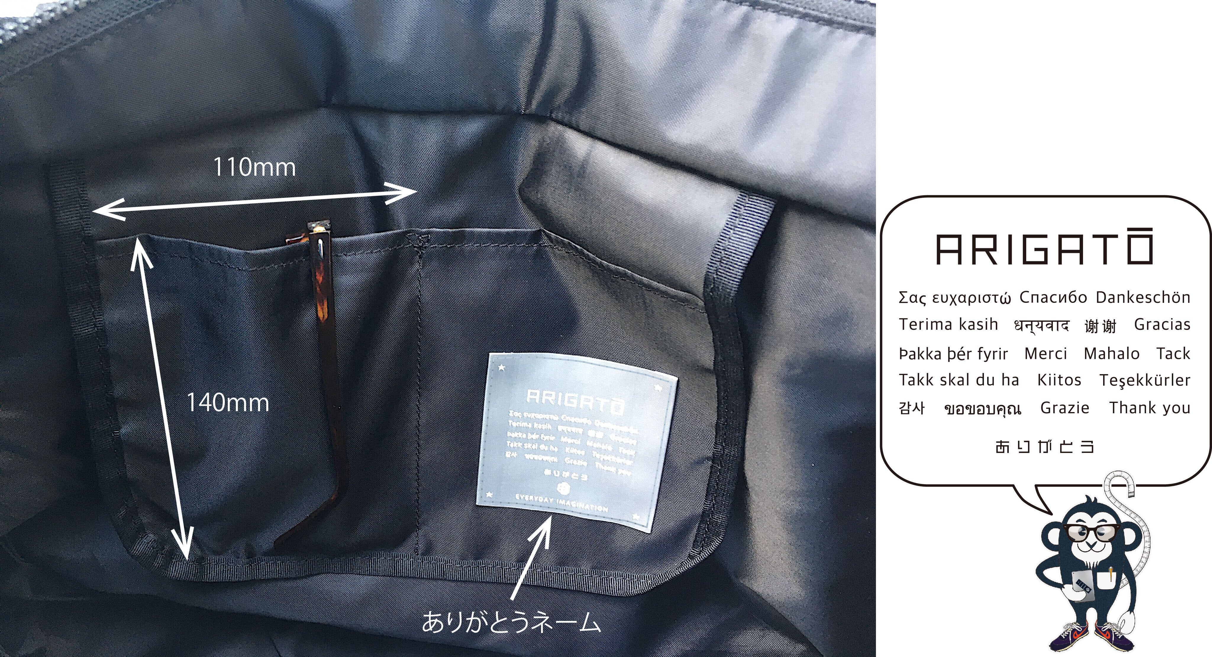 内ポケットには携帯電話や鍵類、チケットなど簡易的にご利用下さい。