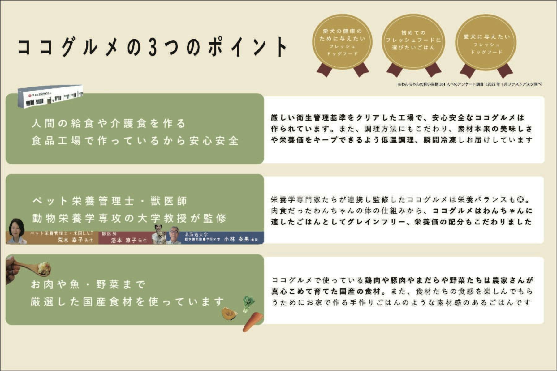 おかげさまでココグルメは3周年を迎え、会員数はフレッシュフードNo.1(※1)まで成長することができ、より多くの方にお届けできるように工場の拠点を増やすまでになりました。