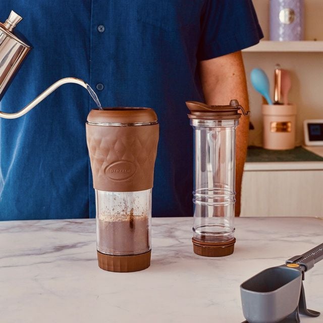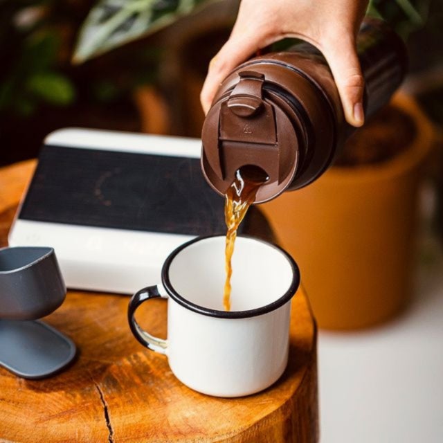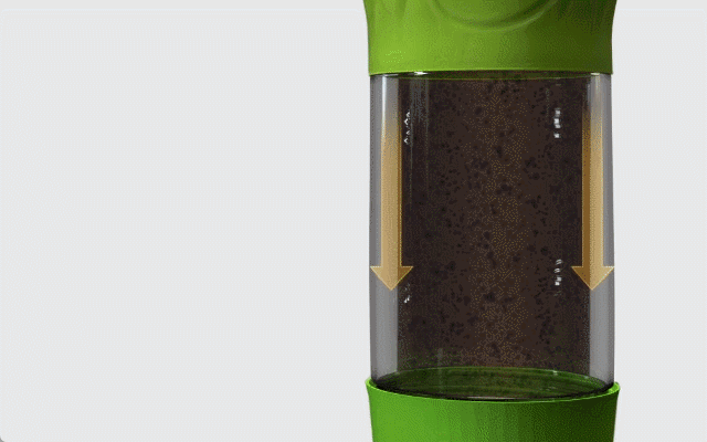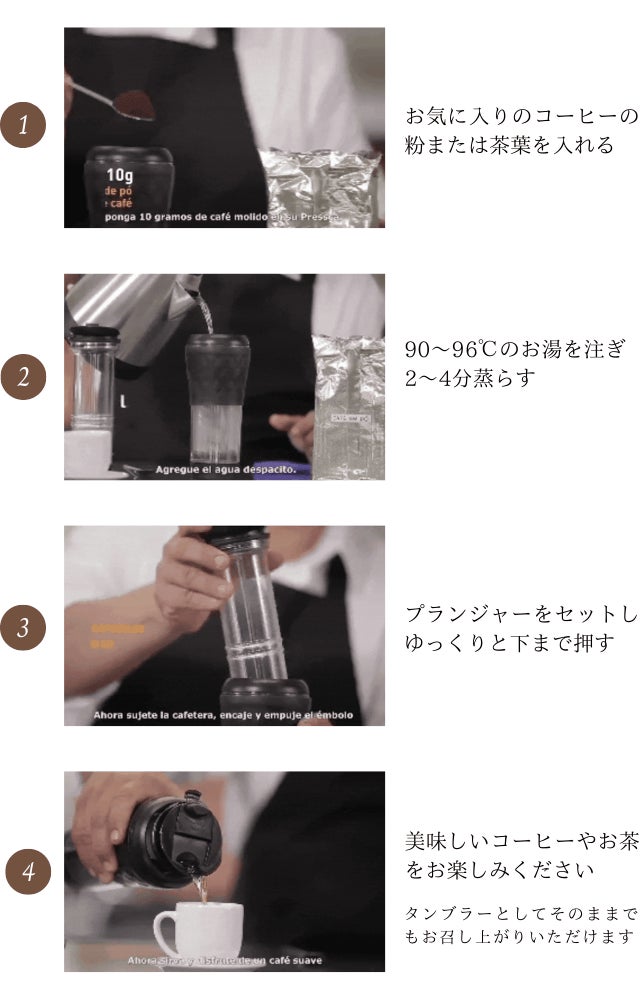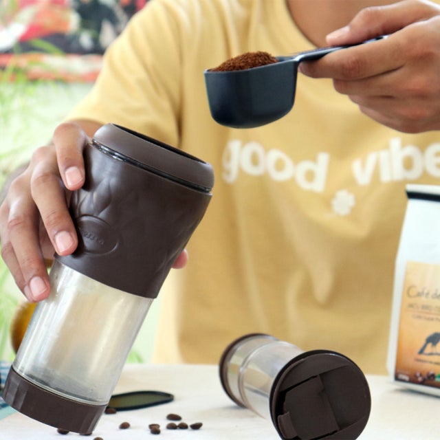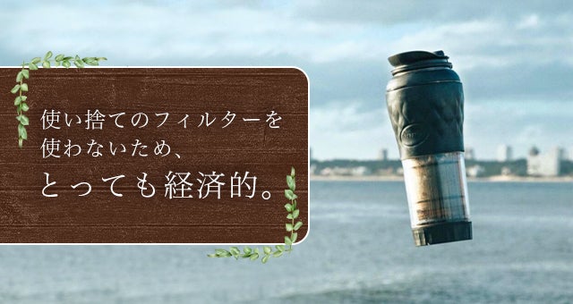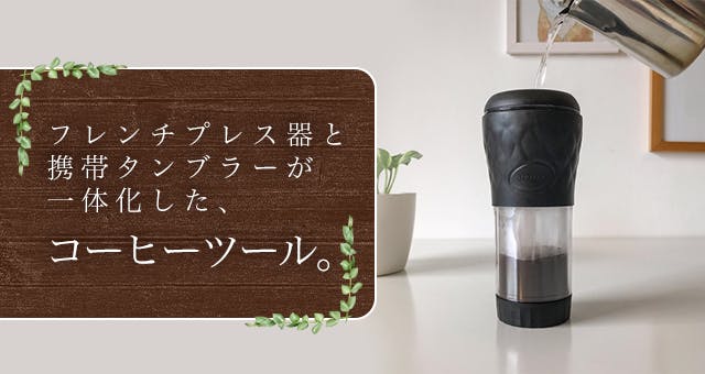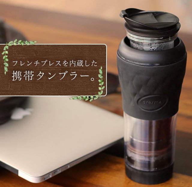 面倒なセッティングは一切不要で、フレンチプレスで淹れたコーヒーをそのままタンブラーで味わえる優れもの。