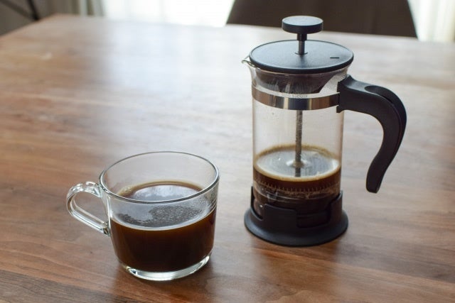 ハンドドリップも美味しいけれど、コーヒーオイルも一緒に豆本来の味を味わいたい方に人気のフレンチプレス。