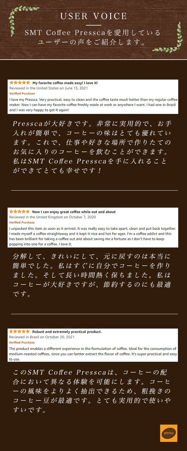 【SMT Coffee Pressca】でもっと手軽に美味しいフレンチプレスをお楽しみください。