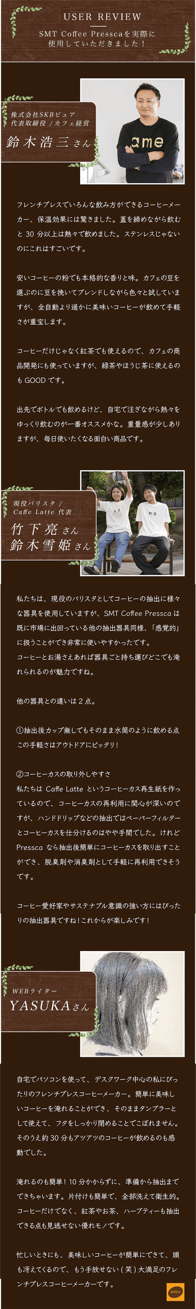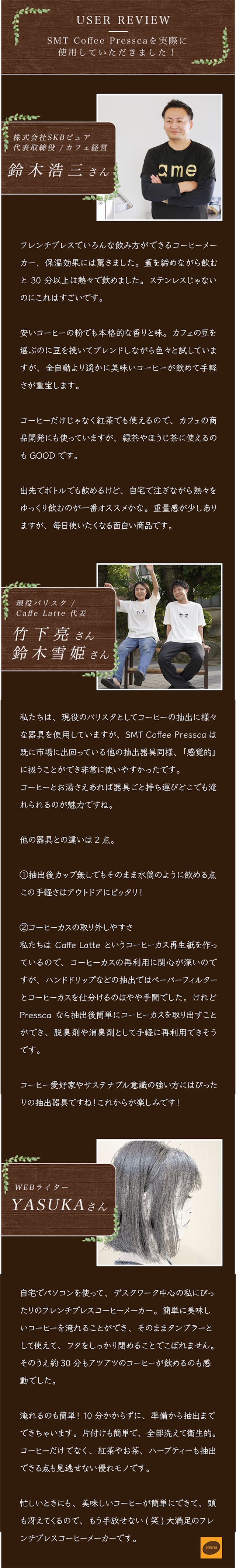 ぜひ日本のMakuakeの皆さまにもSMT Coffee Presscaの素晴らしさを体験していただきたいです。