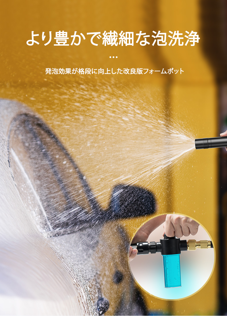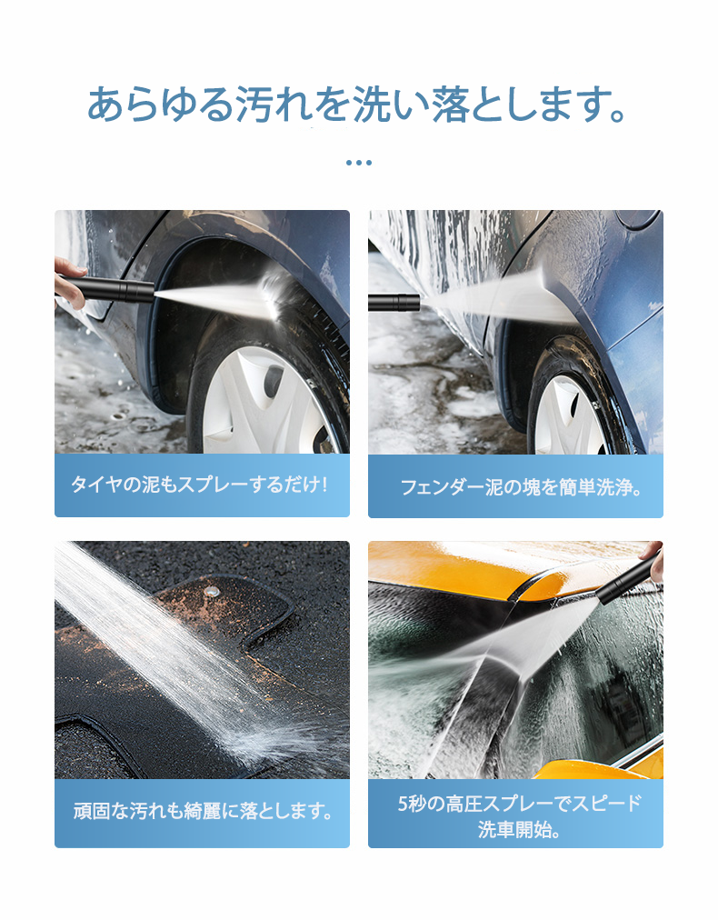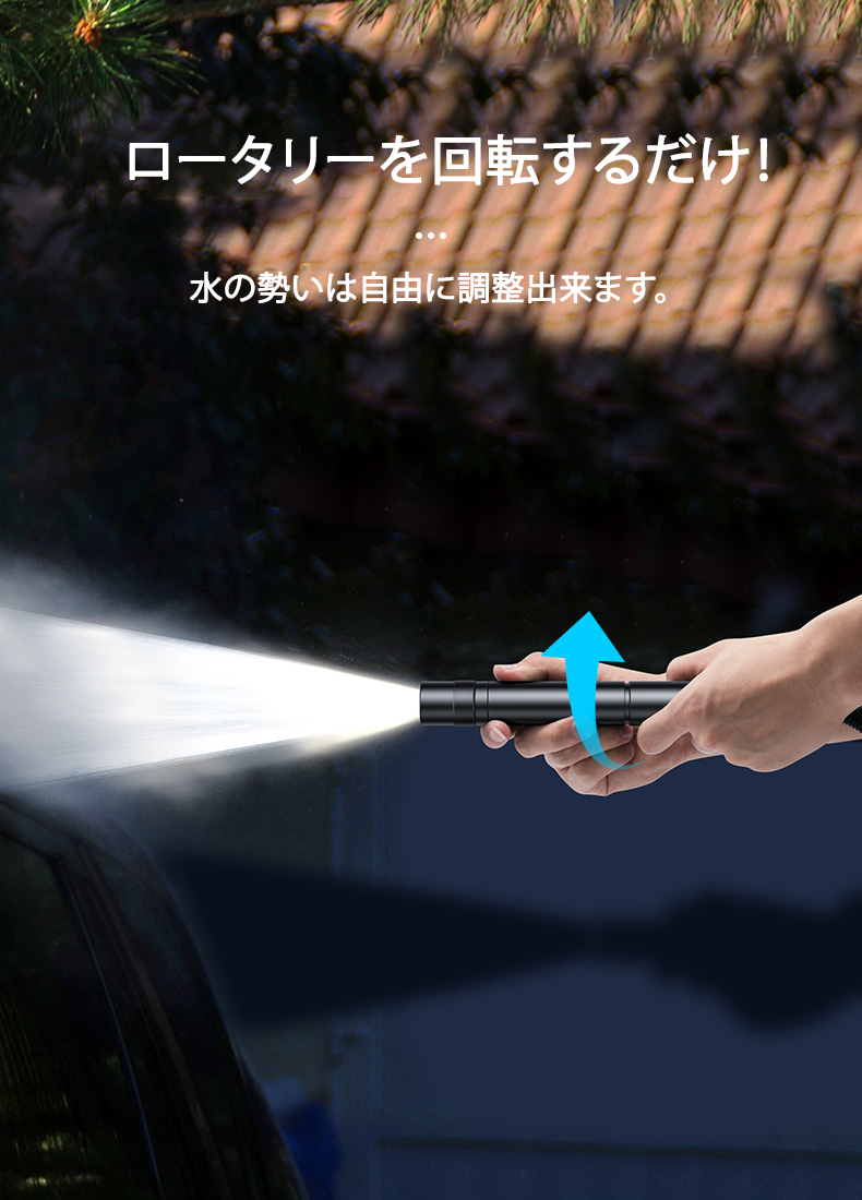 家庭の水道で驚きの高圧噴射を実現し、一点集中の高圧ジェットで頑固な汚れも落とせます。