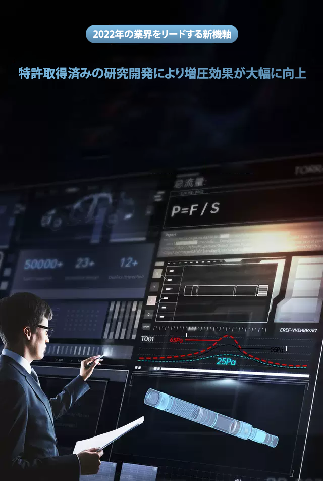 特許取得済みの研究開発により増圧効果が大幅に向上 !