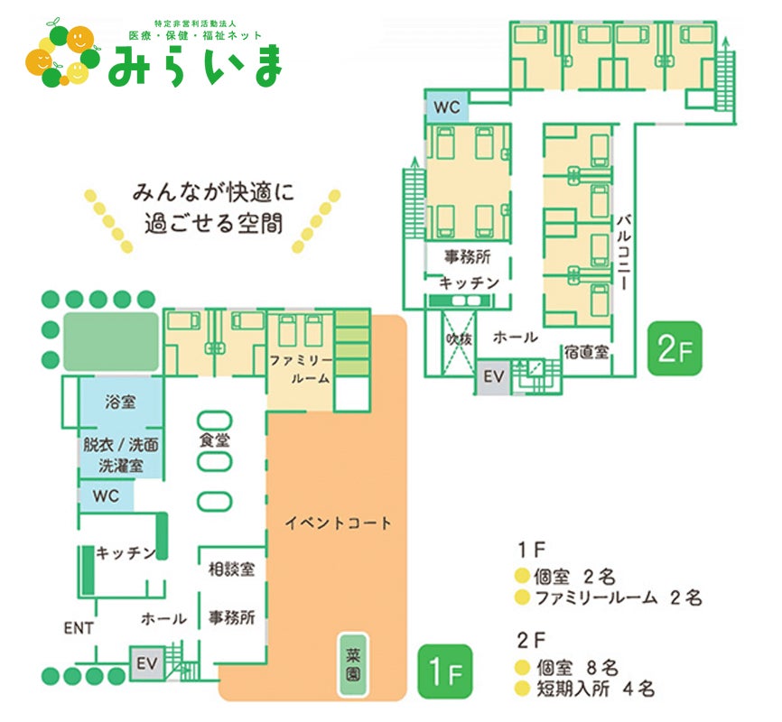 2F 共同生活援助8室 + 短期入所 4名 243.00 m2
