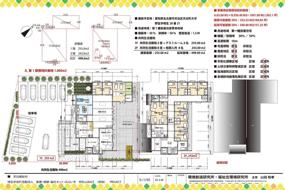 1F 共同生活援助2室 + ゲストルーム2名 255.00 m2